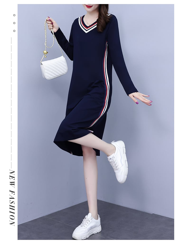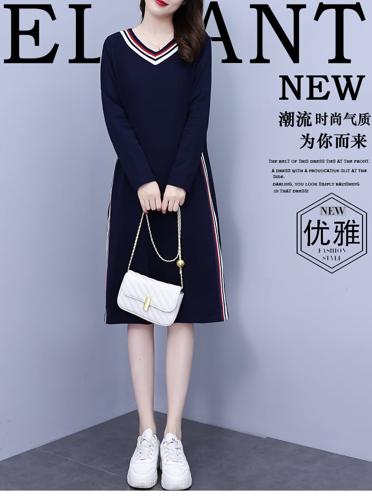 オータムカジュアルドレス ルーズ薄手スカート ロング 大きめサイズ 秋物 muto9489598456