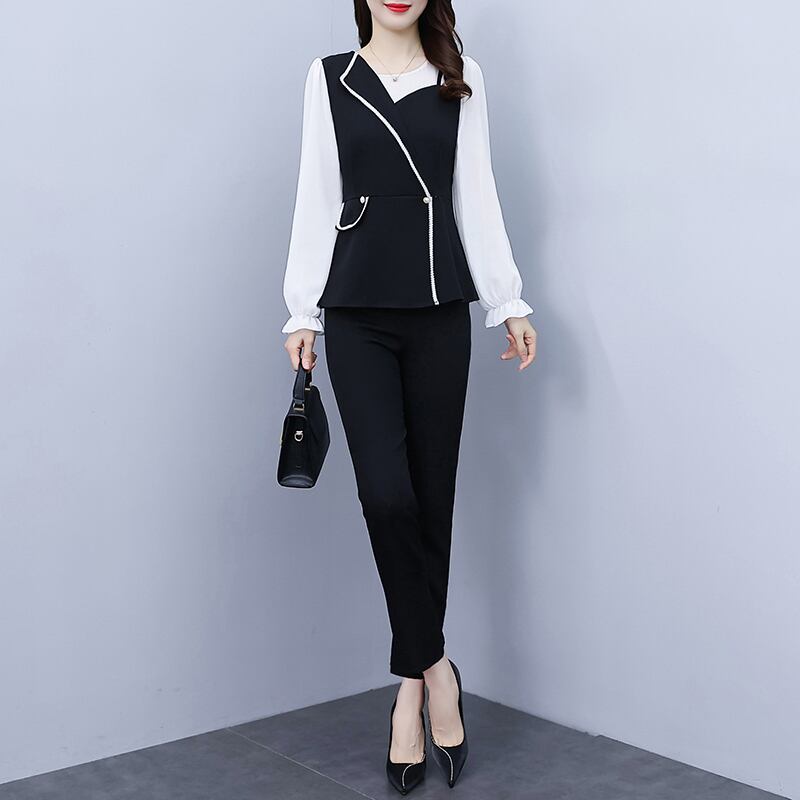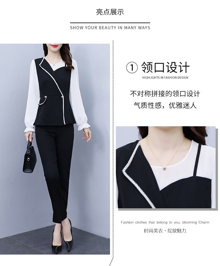 オータム薄手トップス パンツ セット 大きめサイズ 秋物 muto95868519093