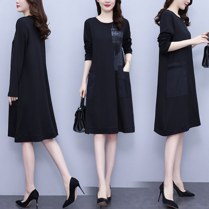 プリント柄ドレス スプリングオータムルーズスカート 大きめサイズ 春物 秋物 muto87327051968