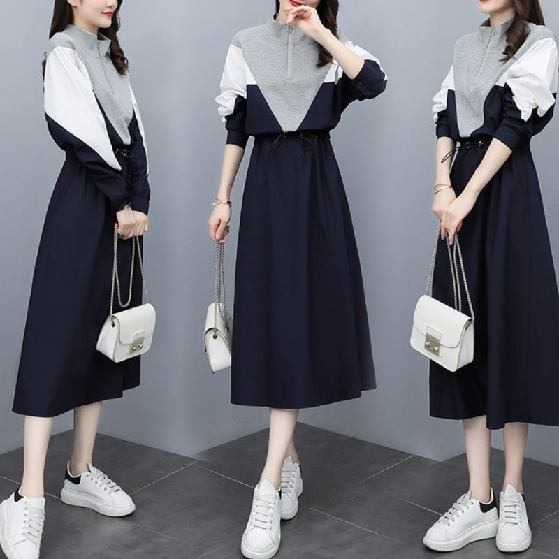 ドレス オータムスタンダードウェストスカート レトロ 大きめサイズ 秋物 ステッチ muto40435489988