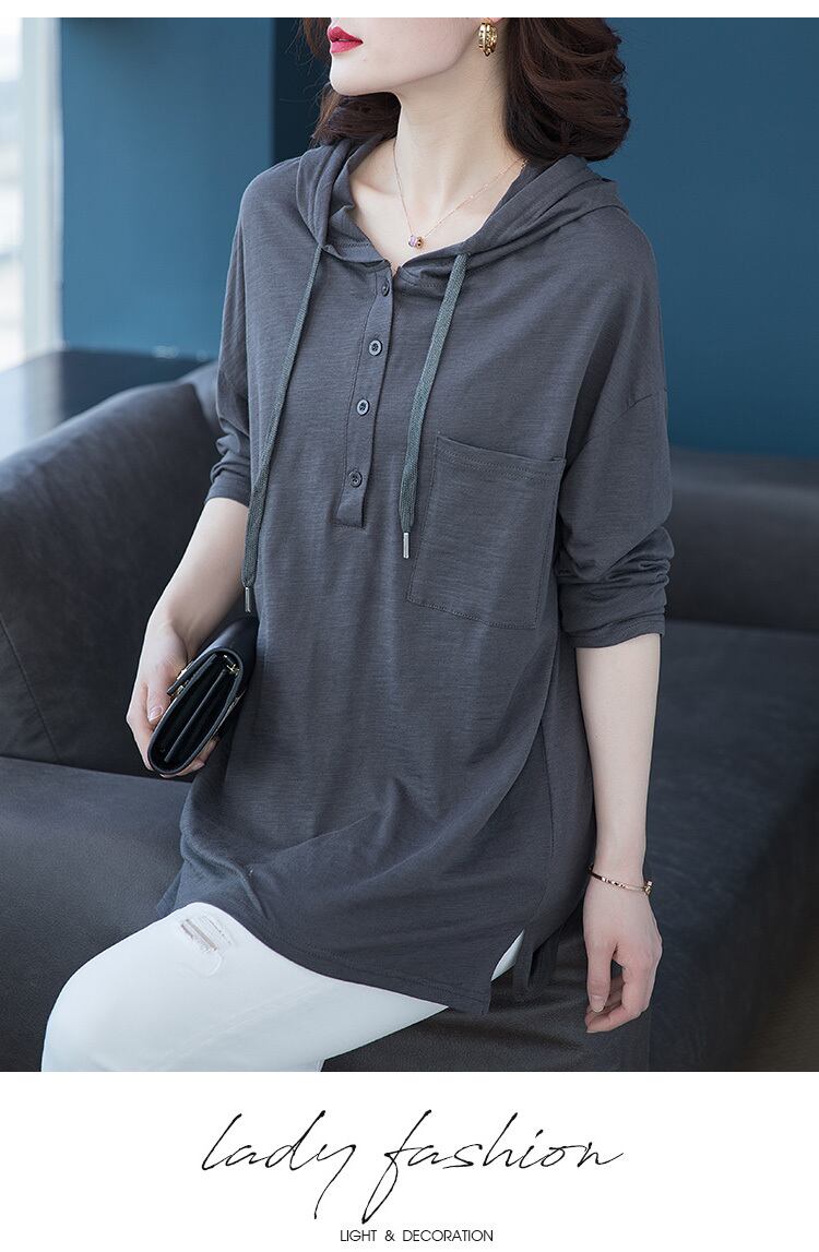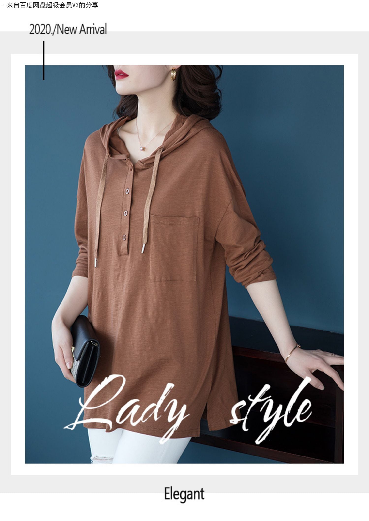 フードセーター Tシャツ シャツ スプリングオータム薄手ルーズ ロング 大きめサイズ 春物 秋物 muto8917548640