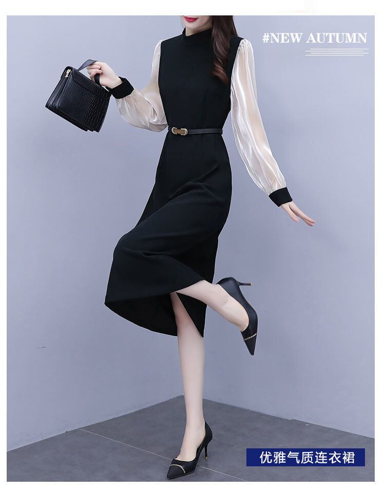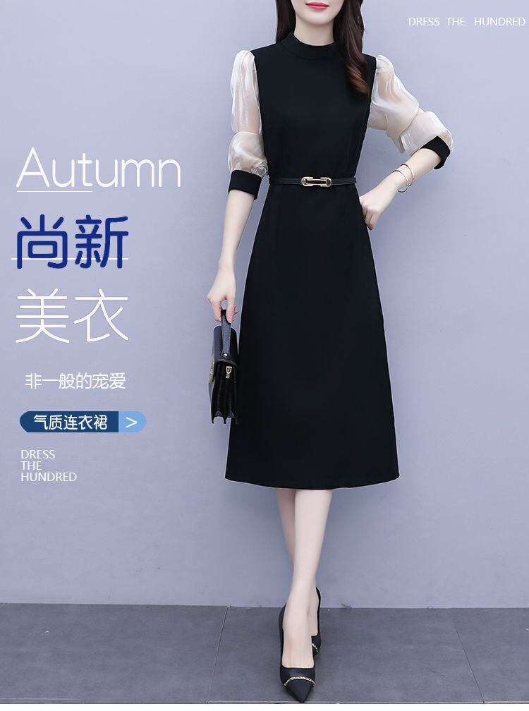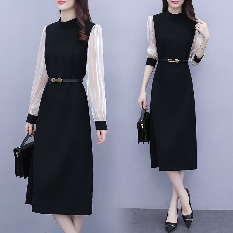 ドレス オータム薄手ウェストスカート ロング 大きめサイズ 秋物 ステッチ muto83575897750
