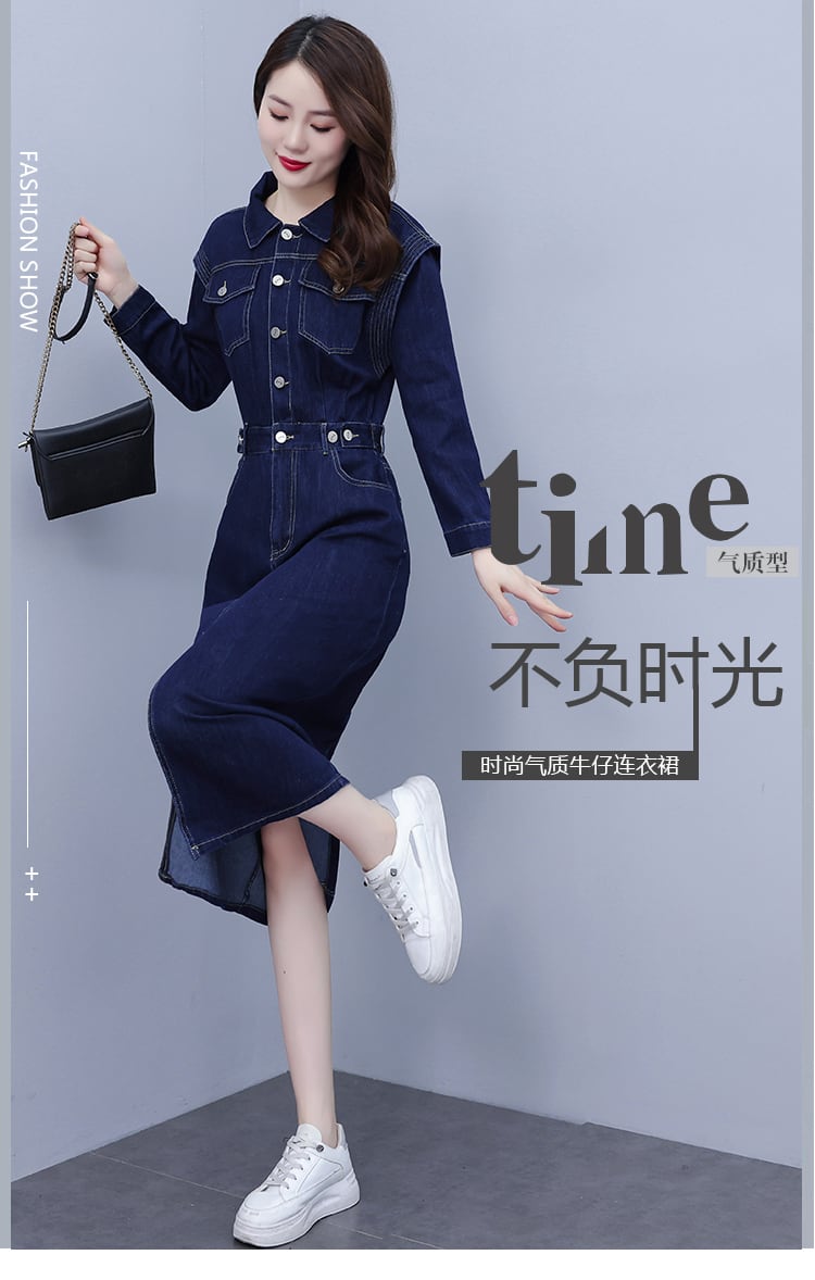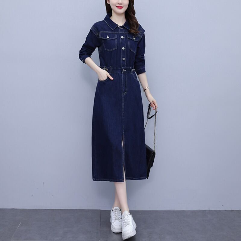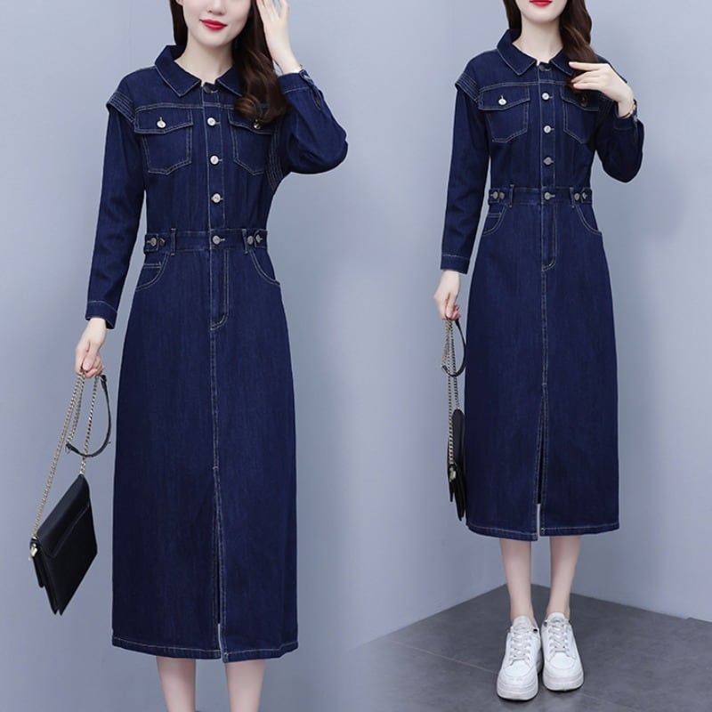 スタンダードドレス スプリングオータムカジュアルハイウェストウェスト薄手シャツ ロングスカート レトロ 大きめサイズ 春物 秋物 muto91411430951