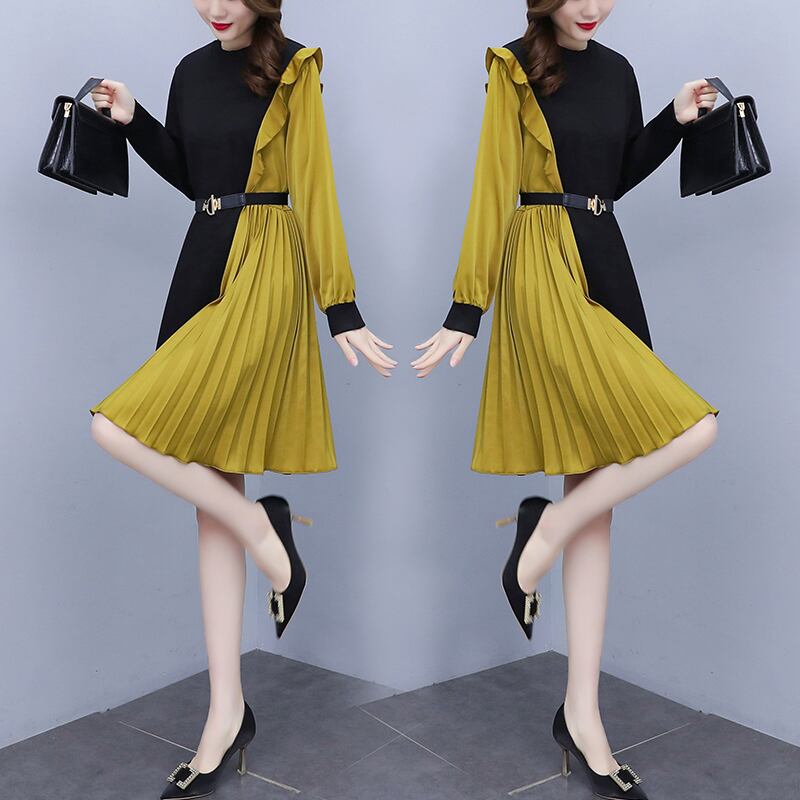 ドレス オータムウェストラッフルロングスカート 大きめサイズ 秋物 ステッチ muto31587786182