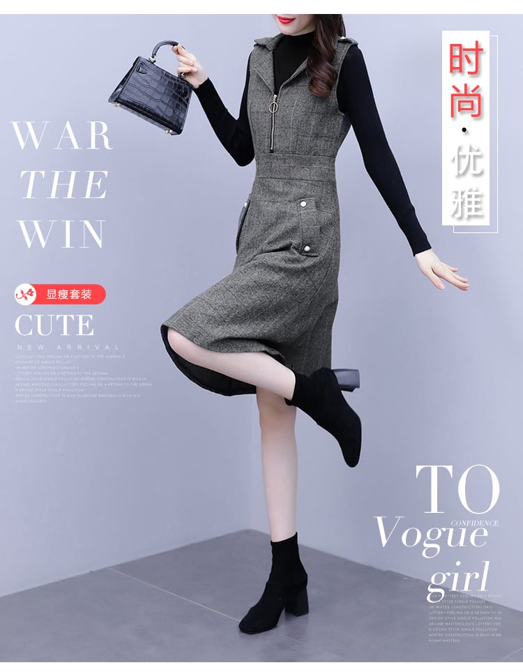 ウールスカート ドレス オータムウィンターニットセーター セット 大きめサイズ 秋物 冬物 muto80579751305