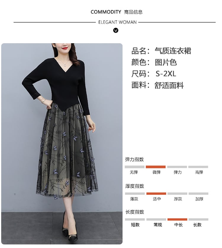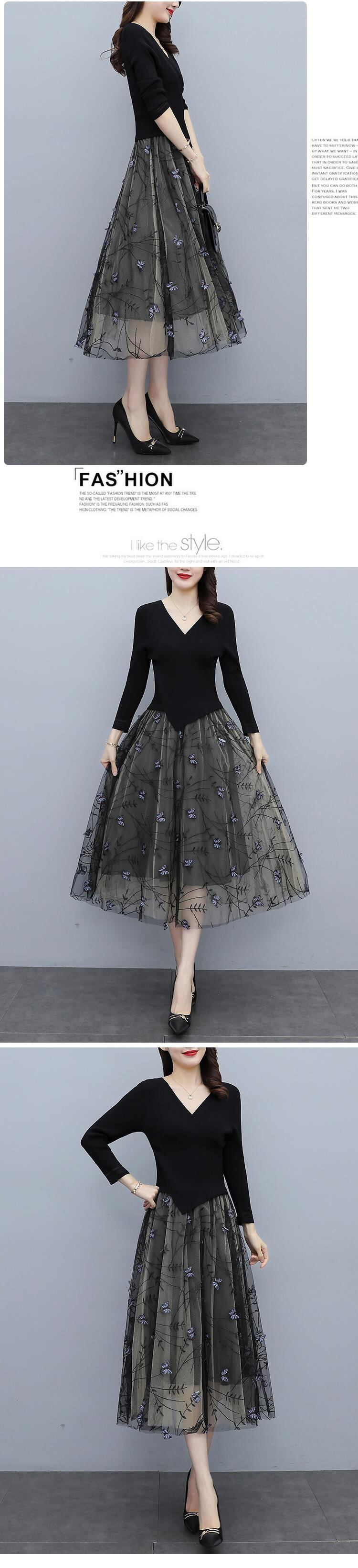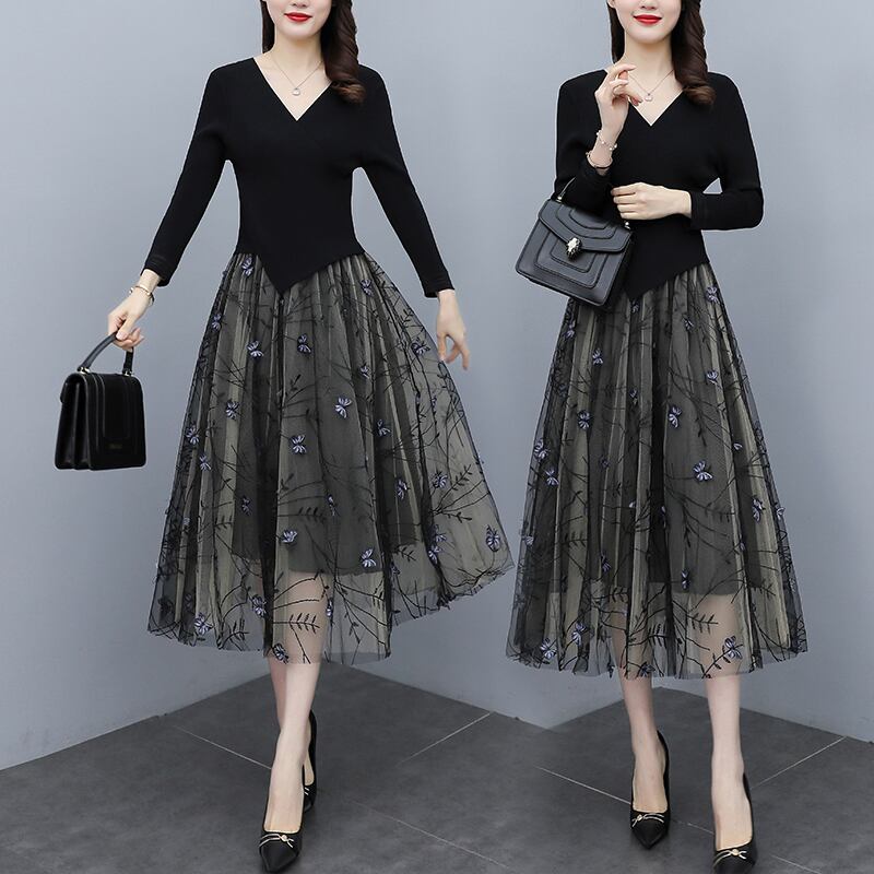 ニットドレス スプリングオータムスリムフィットセーター メッシュスカート 大きめサイズ 春物 秋物 muto34714745953