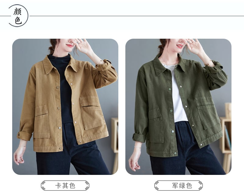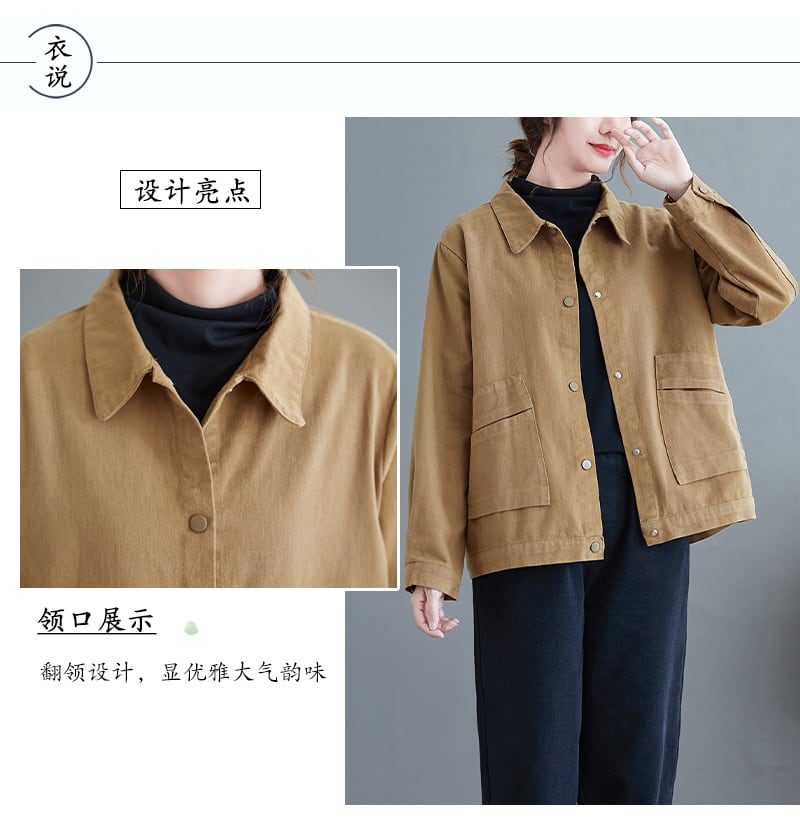 ショートジャケット オータムスタンダードルーズ薄手トップス レトロ 大きめサイズ 秋物 muto35562105911