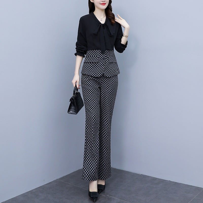 オータム薄手ウェストパンツ セット レッド 大きめサイズ 秋物 muto36661046956