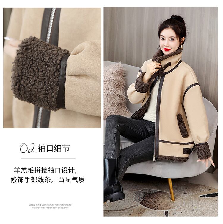 ショートウールコート オータムウィンタールーズ薄手ファーベルベットトップス 秋物 冬物 muto40642302546