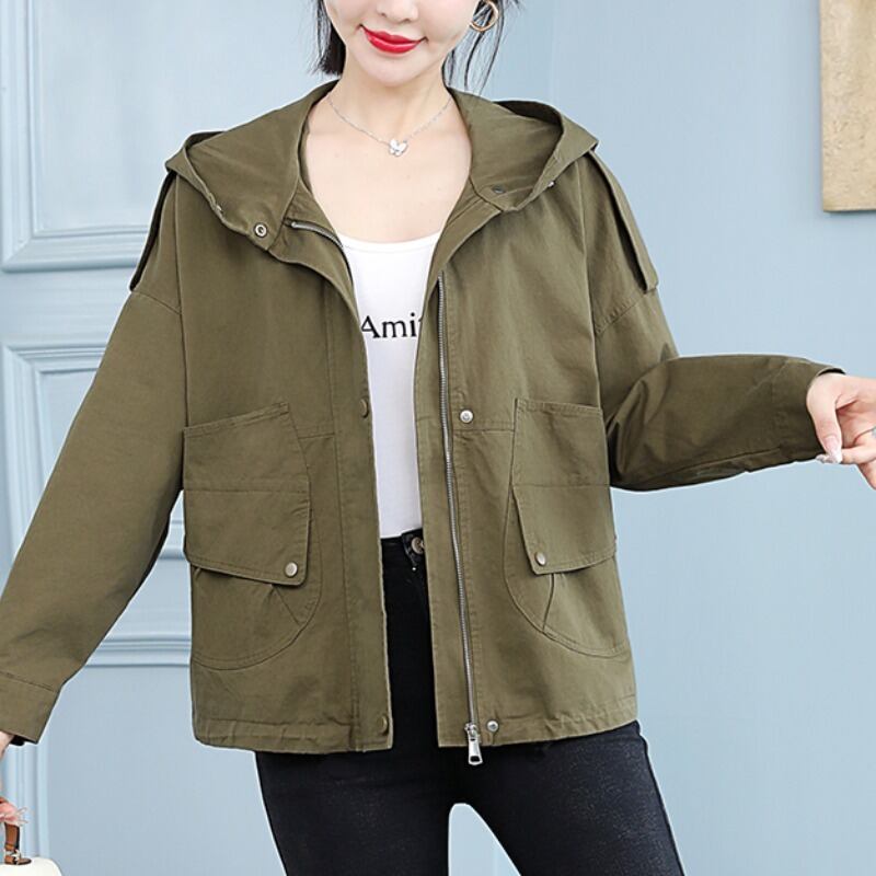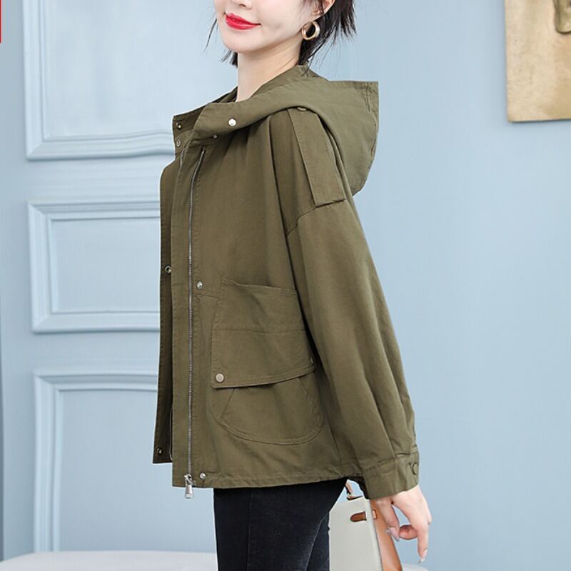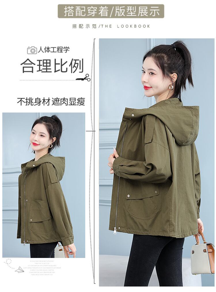 ショートジャケット スプリングオータムスリムフィットフードトップス 大きめサイズ 春物 秋物 muto6001031483