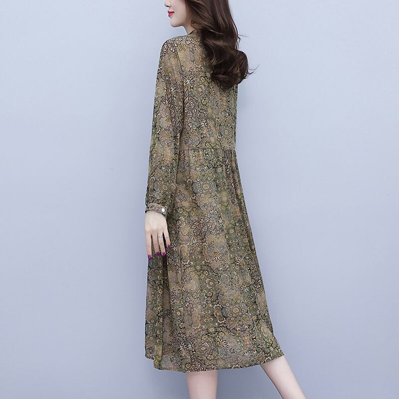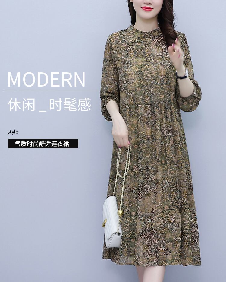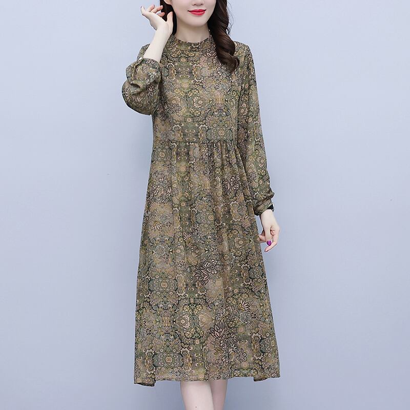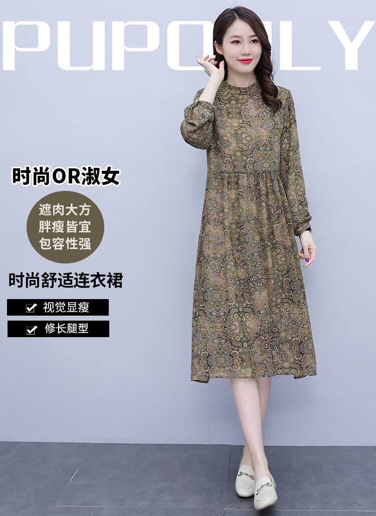 フローラルシフォンドレス オータムスタイルスカート 大きめサイズ 秋物 花柄 muto5302896940