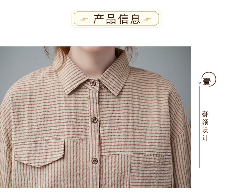ルーズストライプシャツ スプリングオータム薄手カジュアルコート ロング 大きめサイズ 春物 秋物 muto82485151433