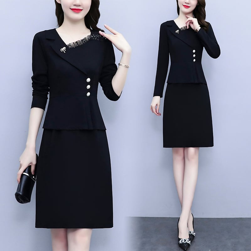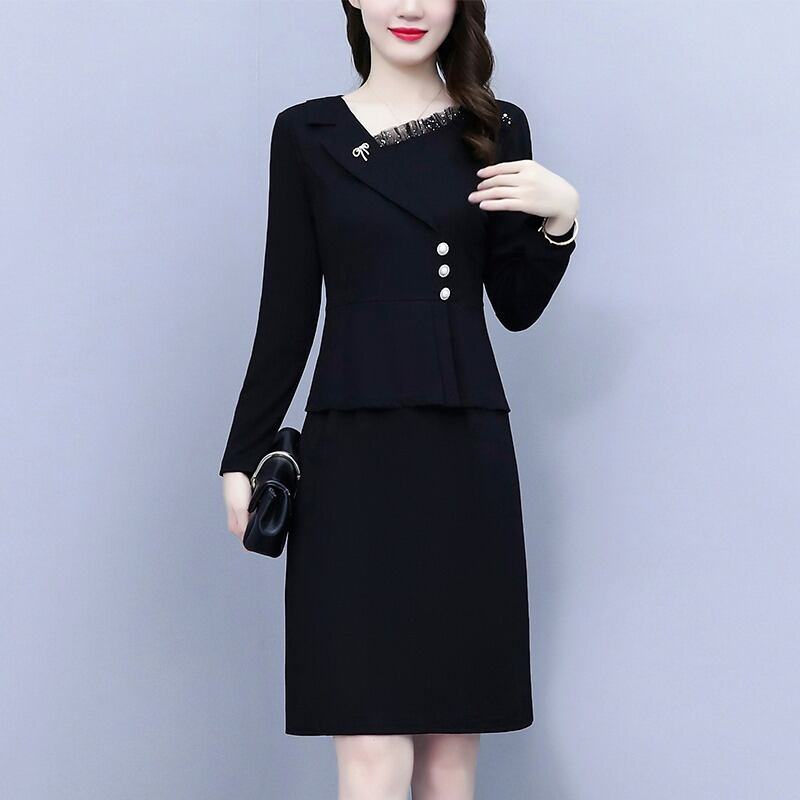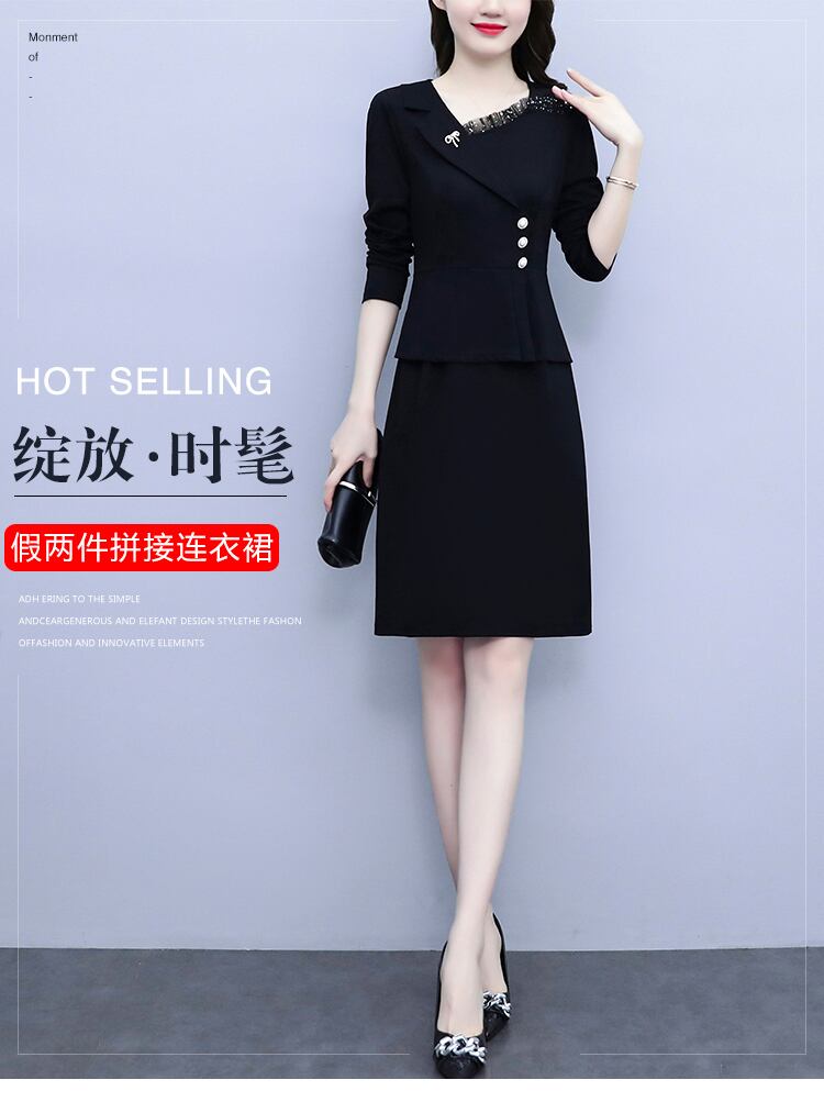 ドレス オータムスタイルスリムスカート 大きめサイズ 秋物 ステッチ muto33243944976
