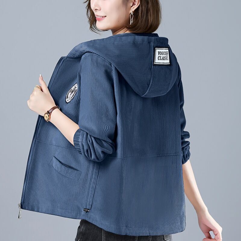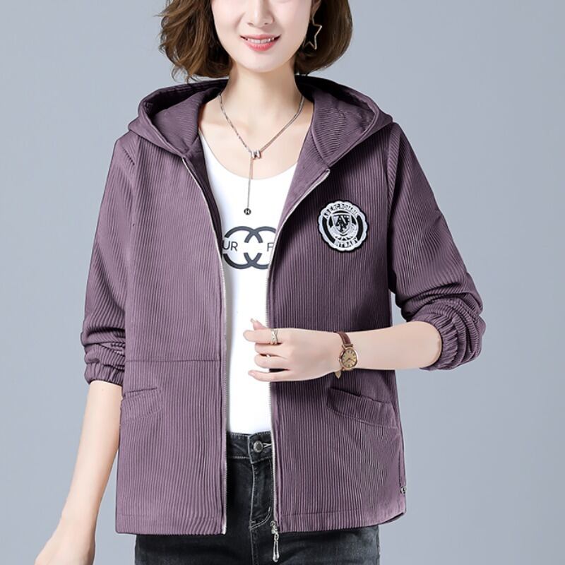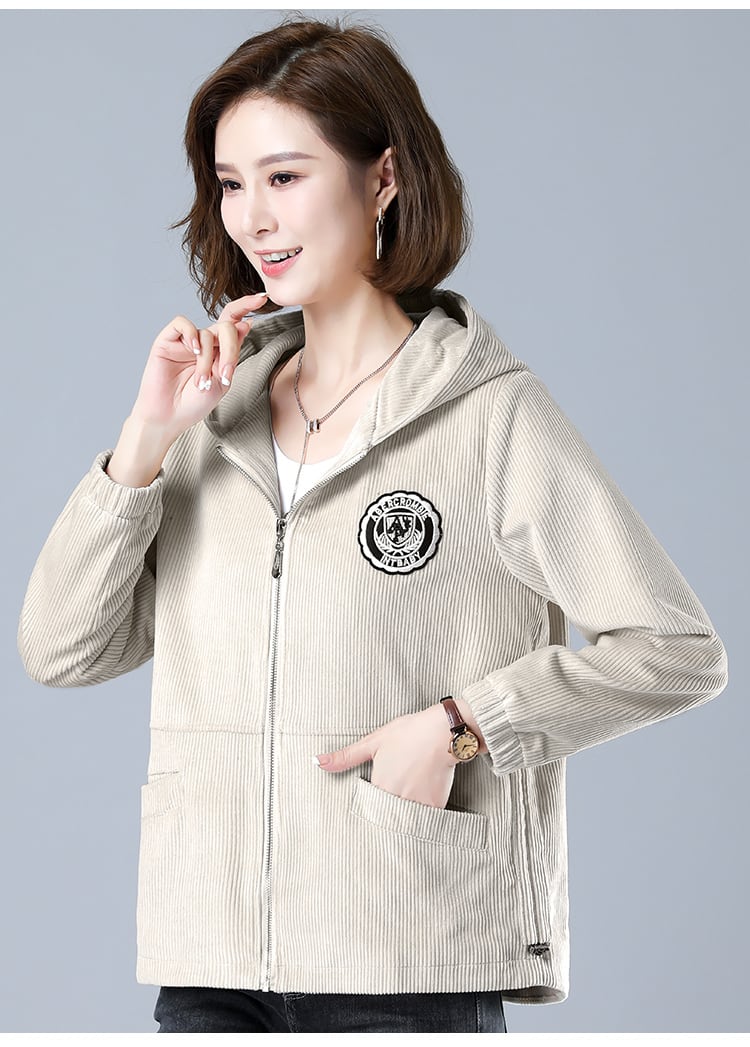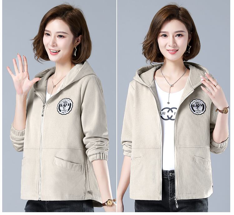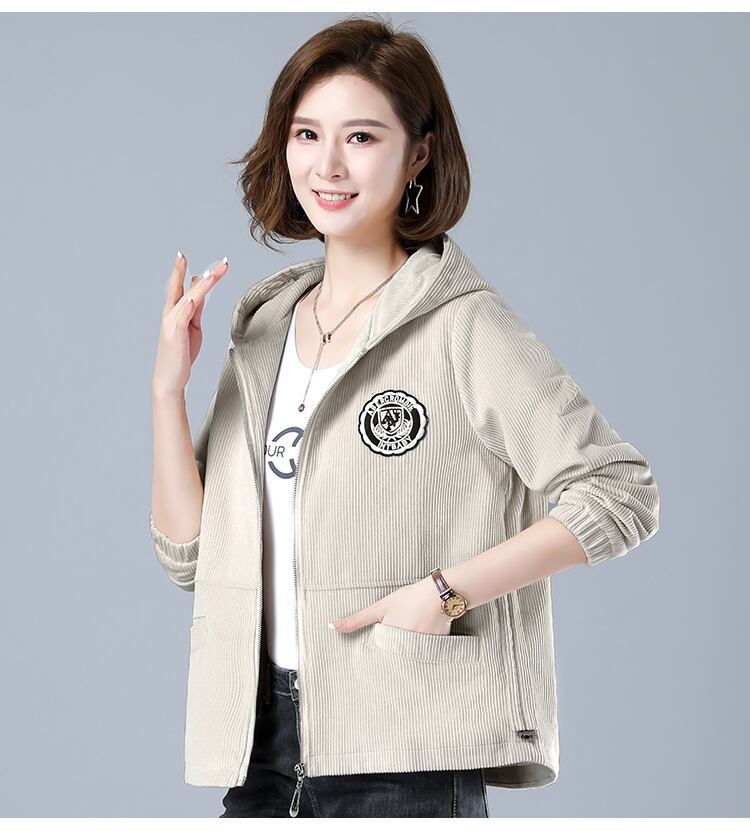 コーデュロイジャケット ショートスタイルスプリングオータムルーズフードトップス 大きめサイズ 春物 秋物 muto23737463066
