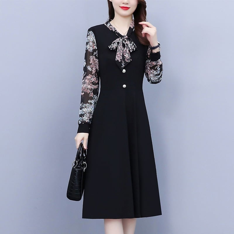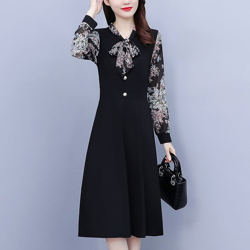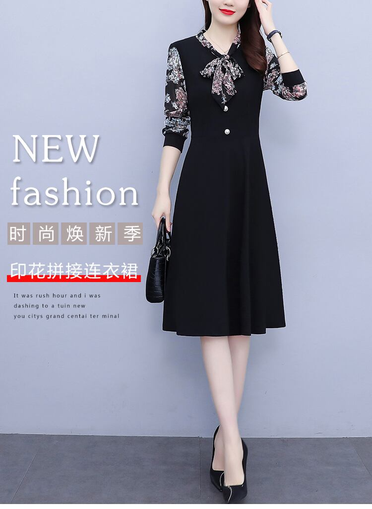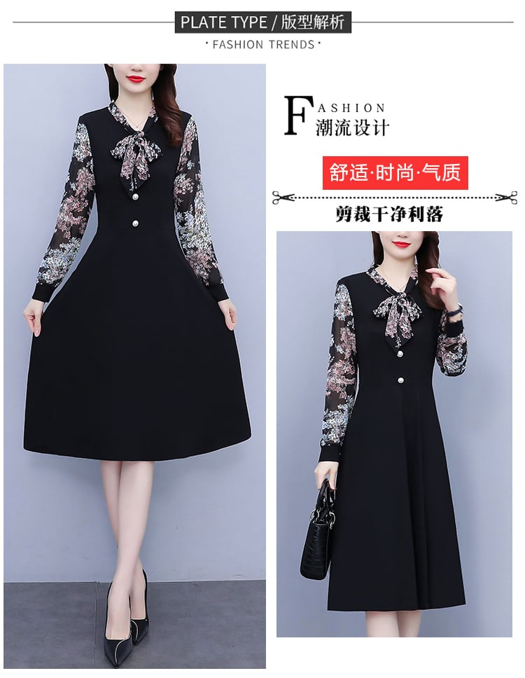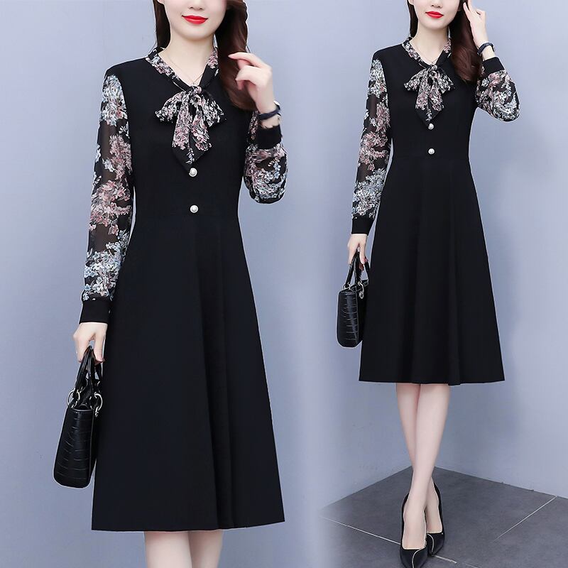 シフォンドレス オータムスタイル薄手スカート 大きめサイズ 秋物 花柄 muto78897364968