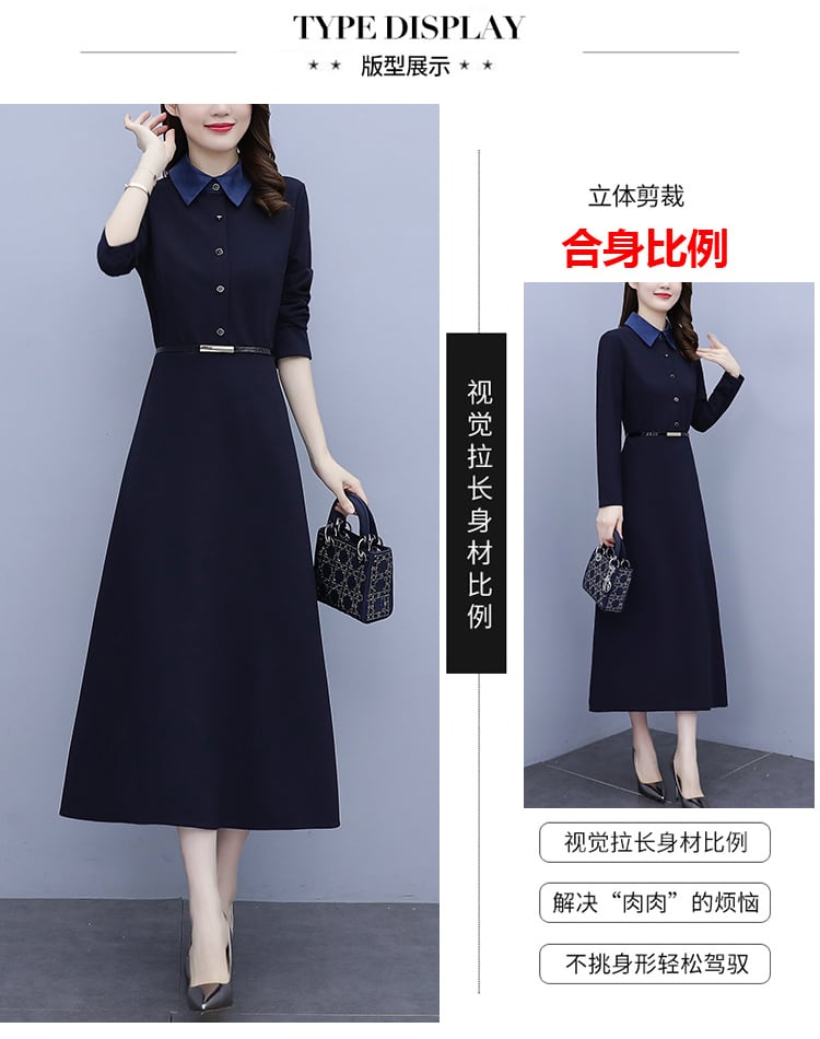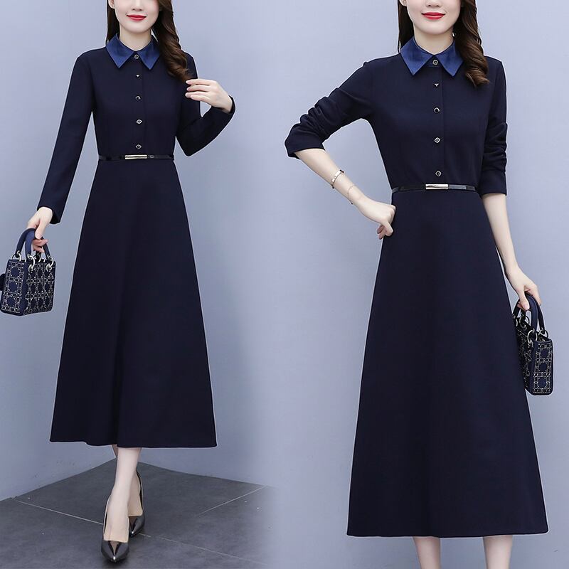 シャツ ドレス スプリングオータムウェスト薄手ロングスカート 大きめサイズ 春物 秋物 muto9854664986