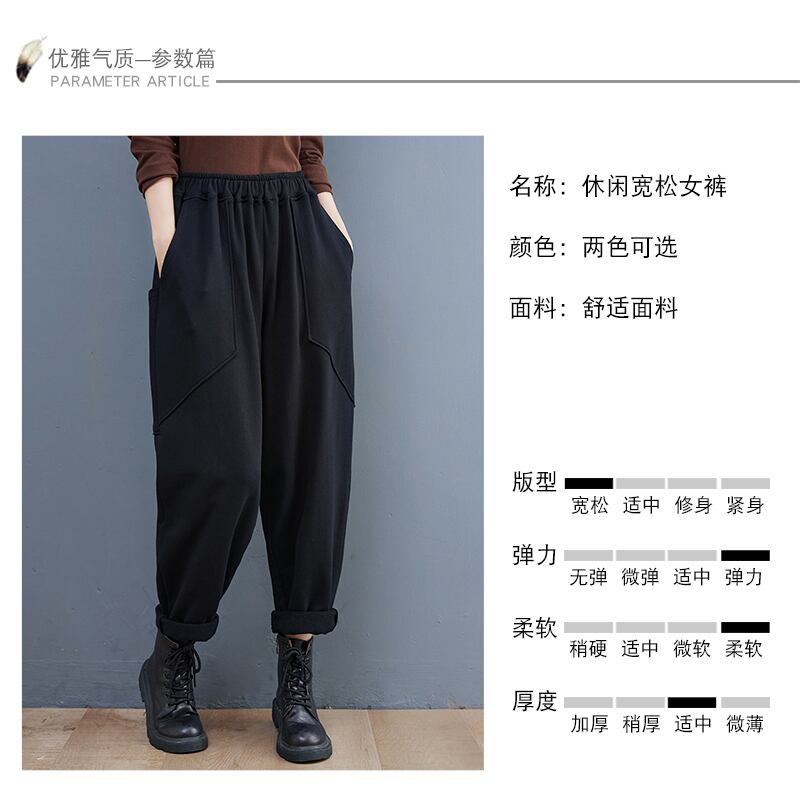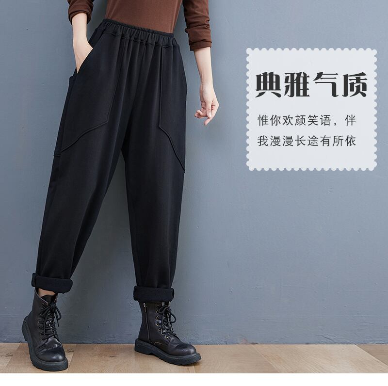 カジュアルパンツ スプリングオータムハイウェストウェスト薄手ルーズ 大きめサイズ 春物 秋物 muto43250851486