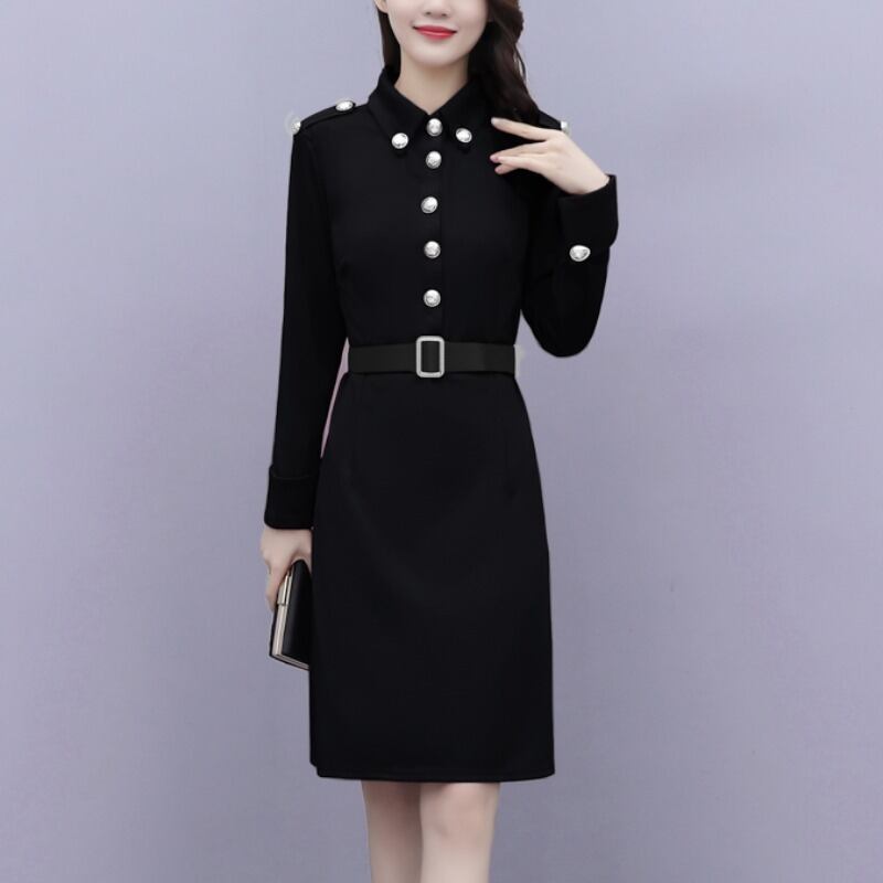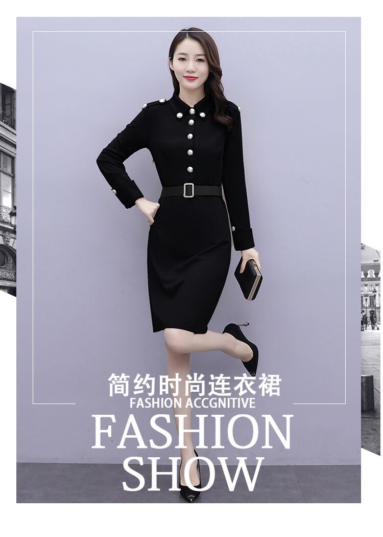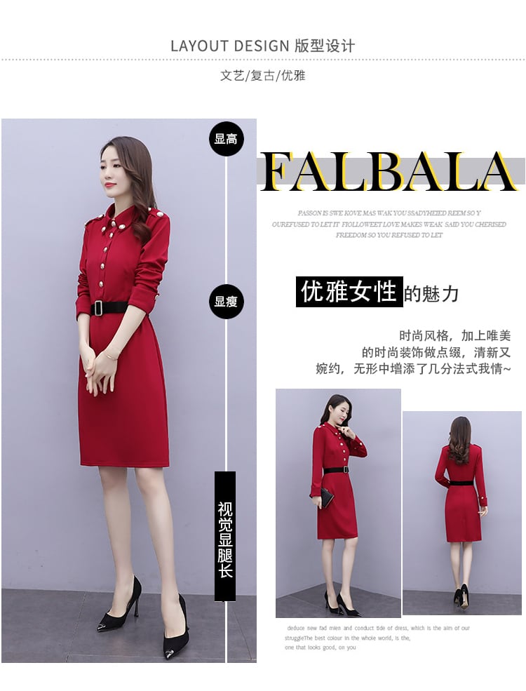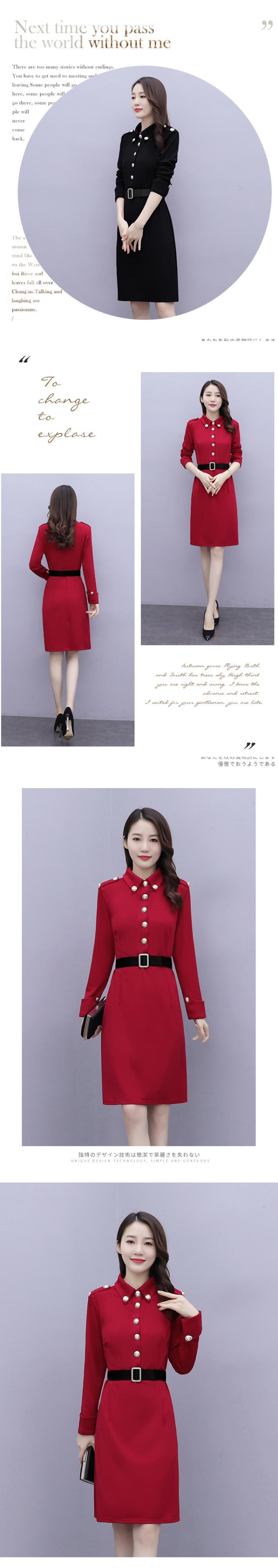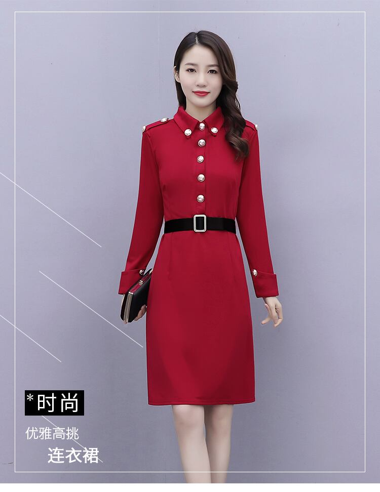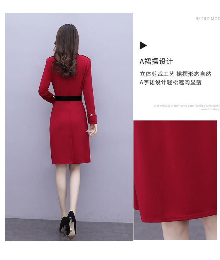 ドレス オータムウェスト薄手Aラインスカート 大きめサイズ 秋物 Oネック muto10592312836