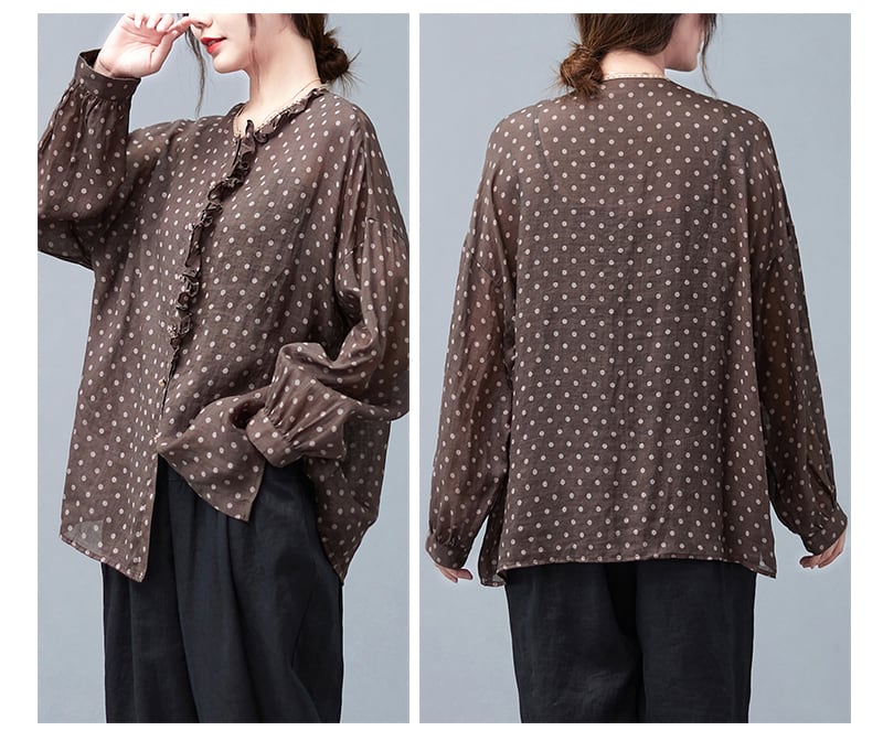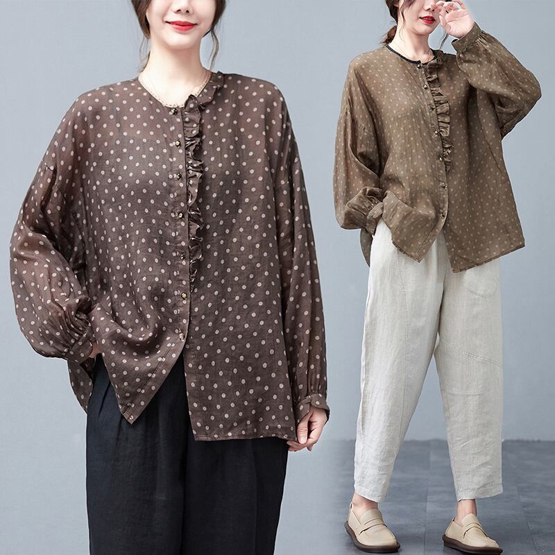 シャツ 水玉トップス ルーズ薄手 大きめサイズ muto94725537371