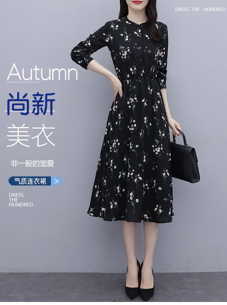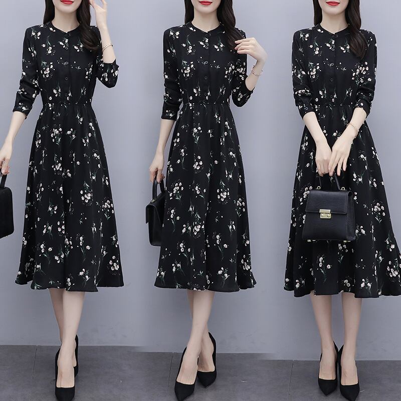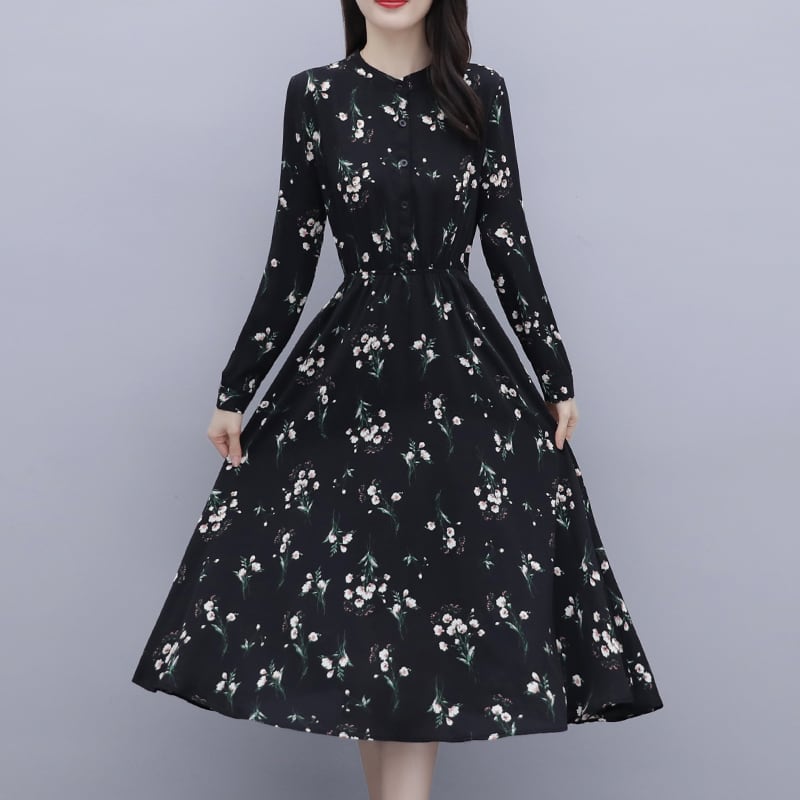 フローラルドレス オータム薄手スカート ロング 大きめサイズ 秋物 花柄 muto16633230292
