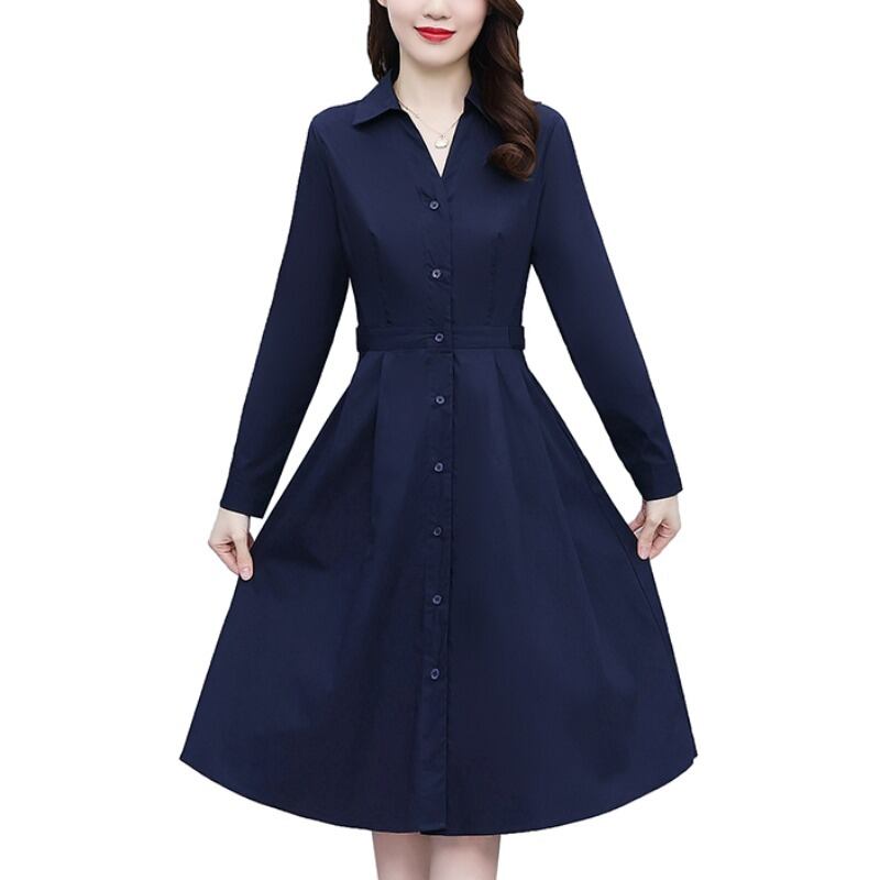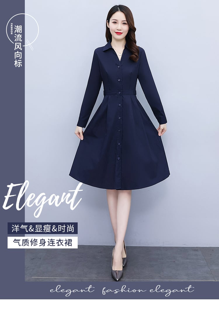 シャツ ドレス オータム薄手ウェストAラインスカート 大きめサイズ 秋物 muto26986947871