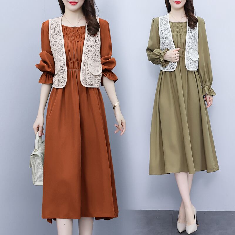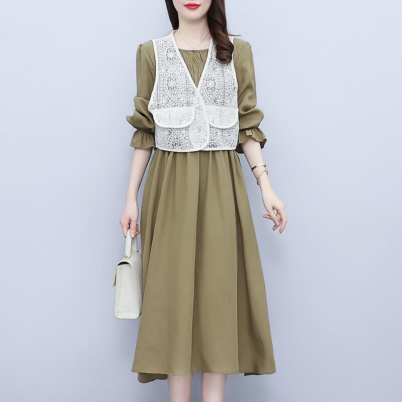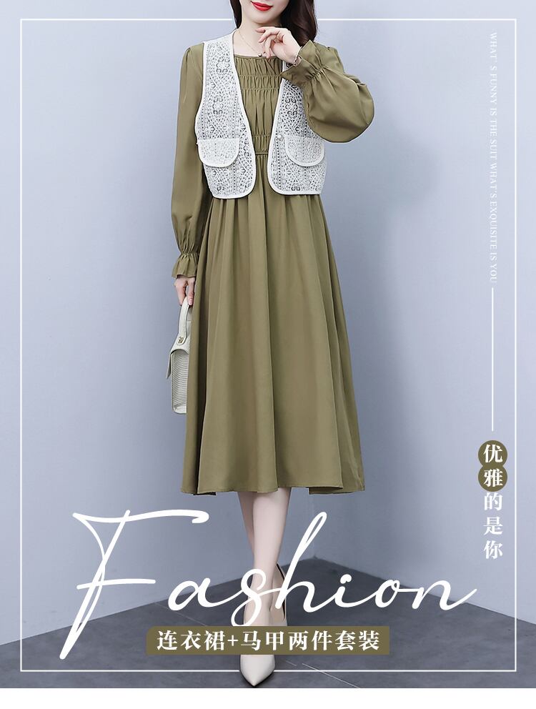 スカート オータムルーズウェストドレス セット 大きめサイズ 秋物 muto16483214047