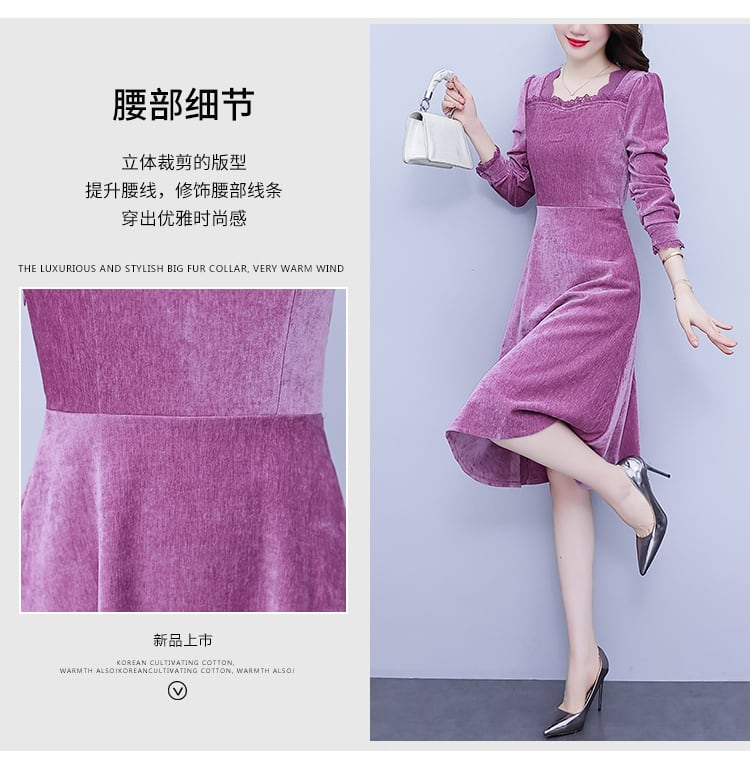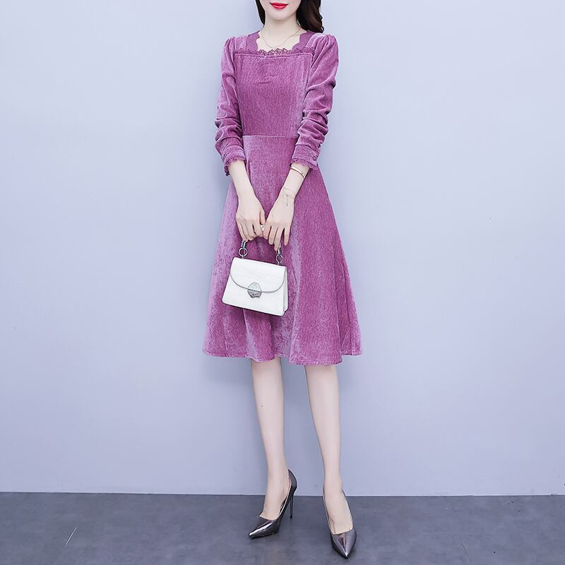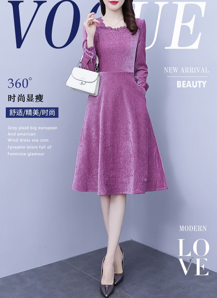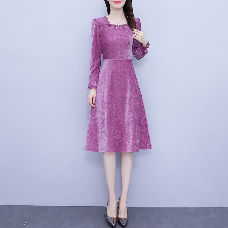 ゴールドベルベットドレス スプリングオータム薄手スカート 大きめサイズ 春物 秋物 muto48927963734