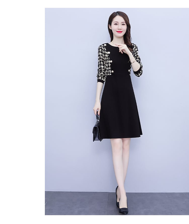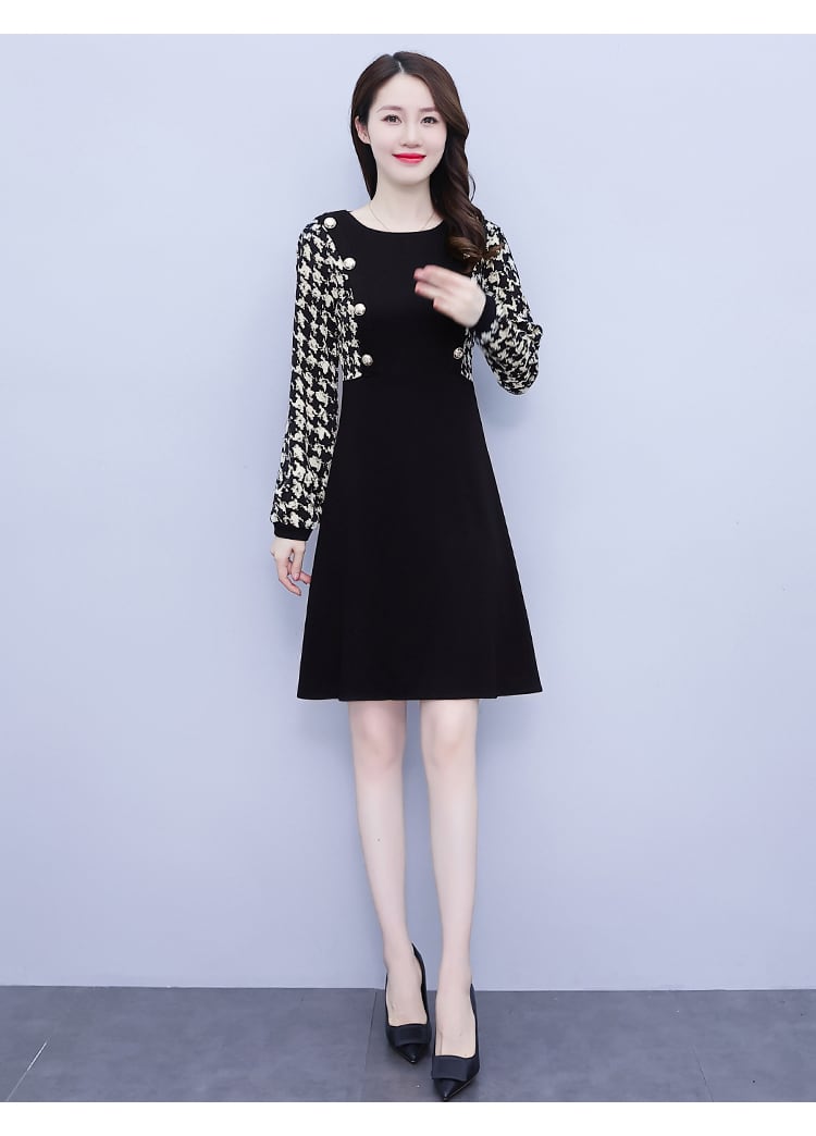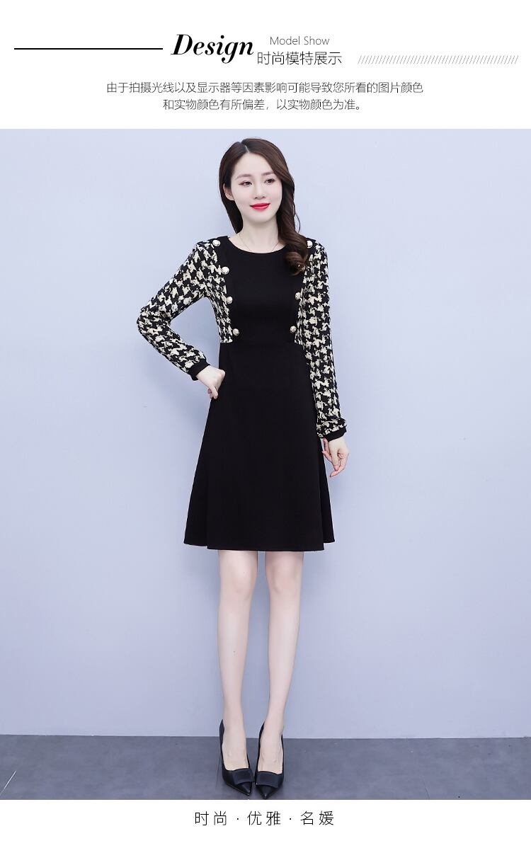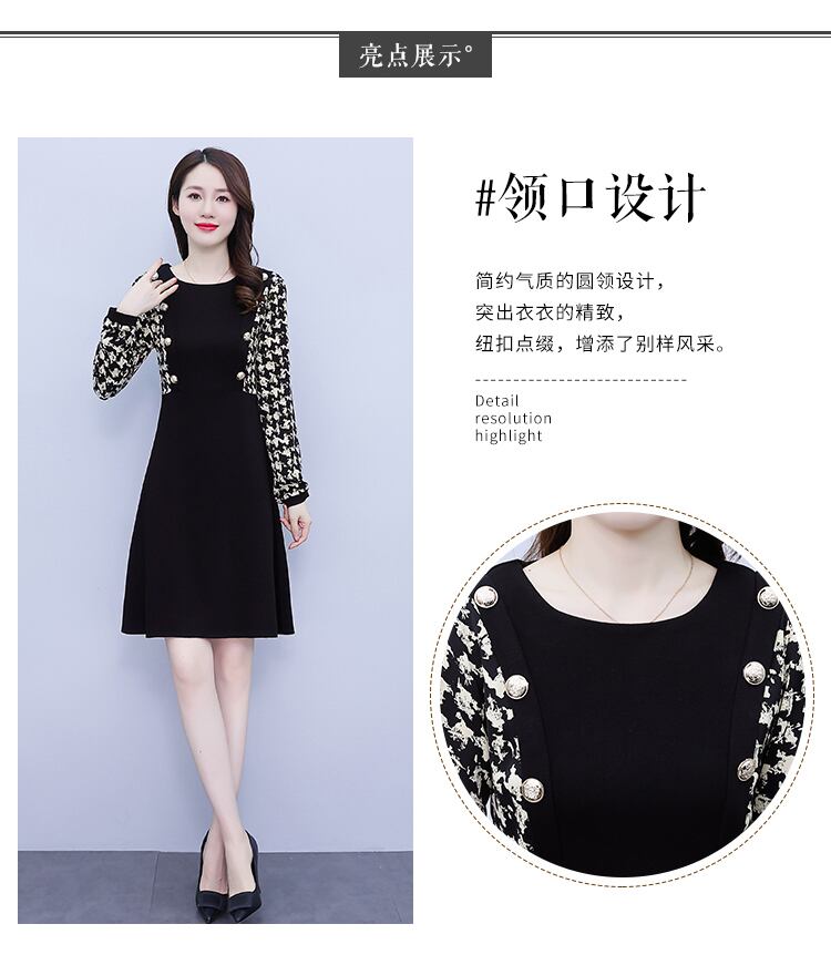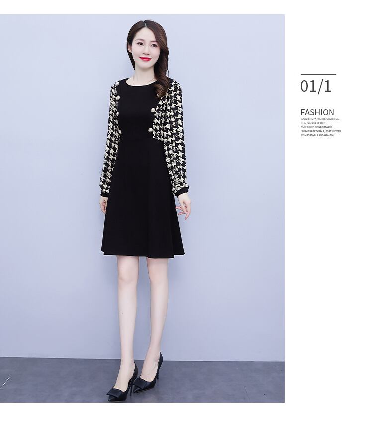 オータムブラックニットドレス 薄手スカート 大きめサイズ 秋物 muto24992388302
