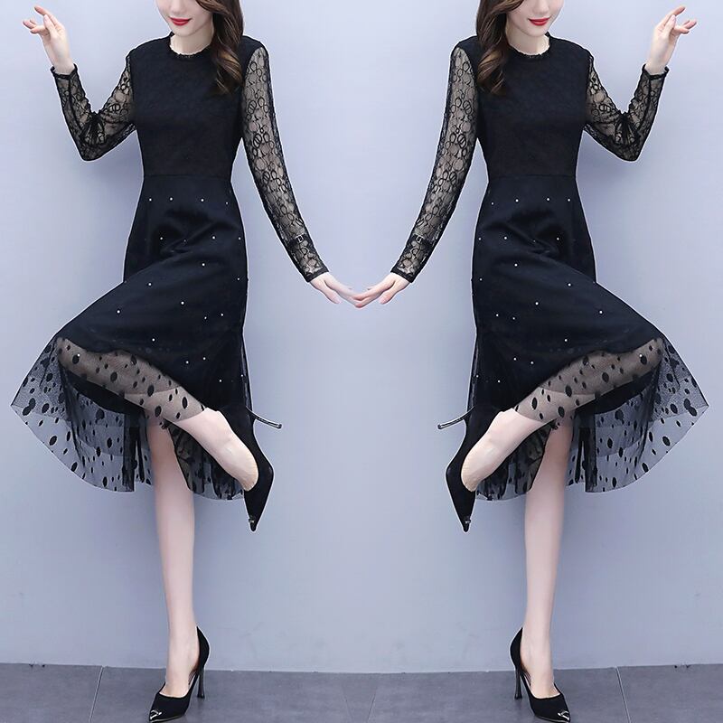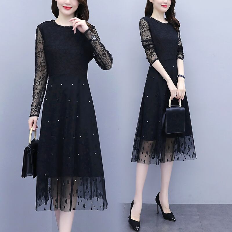 レースドレス オータムウェストメッシュスカート ロング 大きめサイズ 秋物 muto57556790760