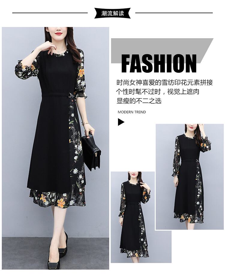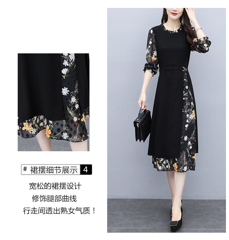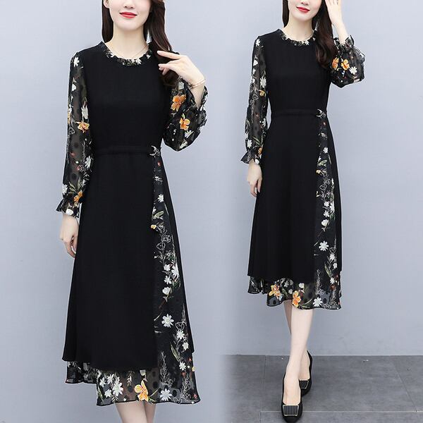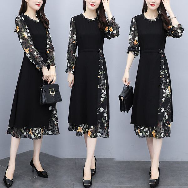 シフォンフローラルドレス オータム薄手ロングスカート 大きめサイズ 秋物 花柄 muto144566863