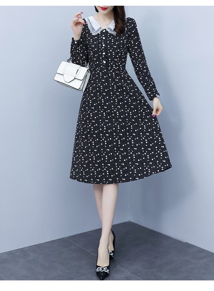 ブラックフローラルドレス スプリングオータムカラースカート レッド 刺繍 大きめサイズ 春物 秋物 花柄 muto19614334322