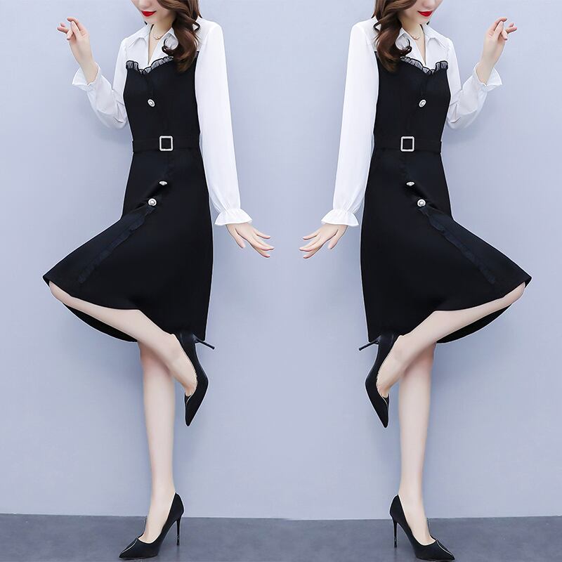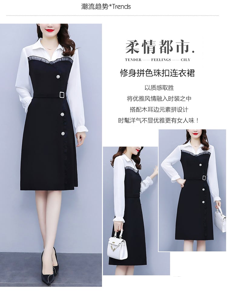 シフォンスリムドレス オータムシャツ スカート 大きめサイズ 秋物 ステッチ muto53681923233