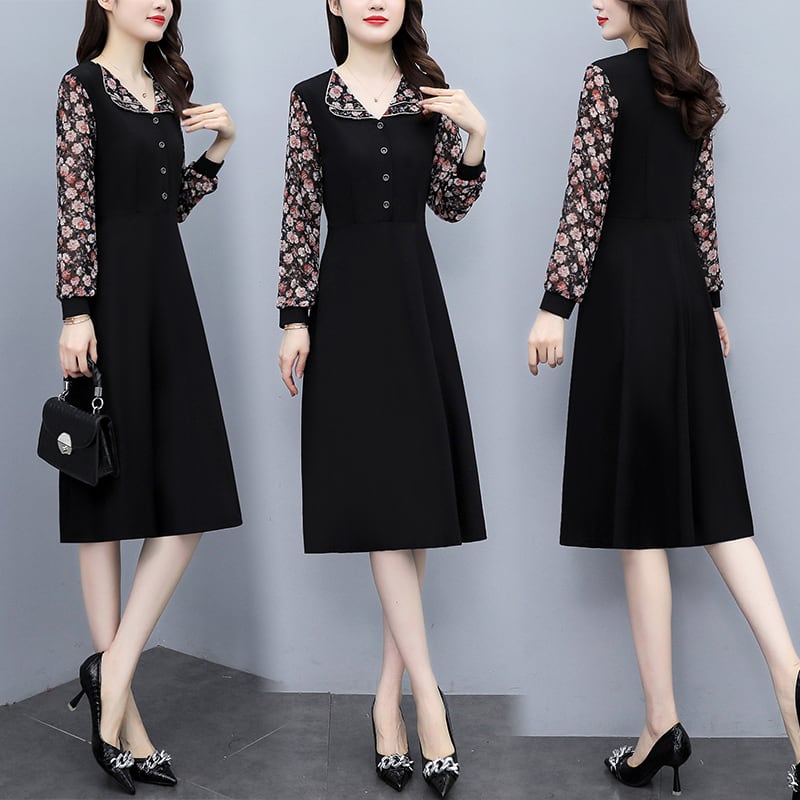シフォンフローラルドレス オータム薄手スカート ロング 大きめサイズ 秋物 花柄 muto63953348546