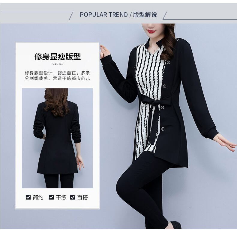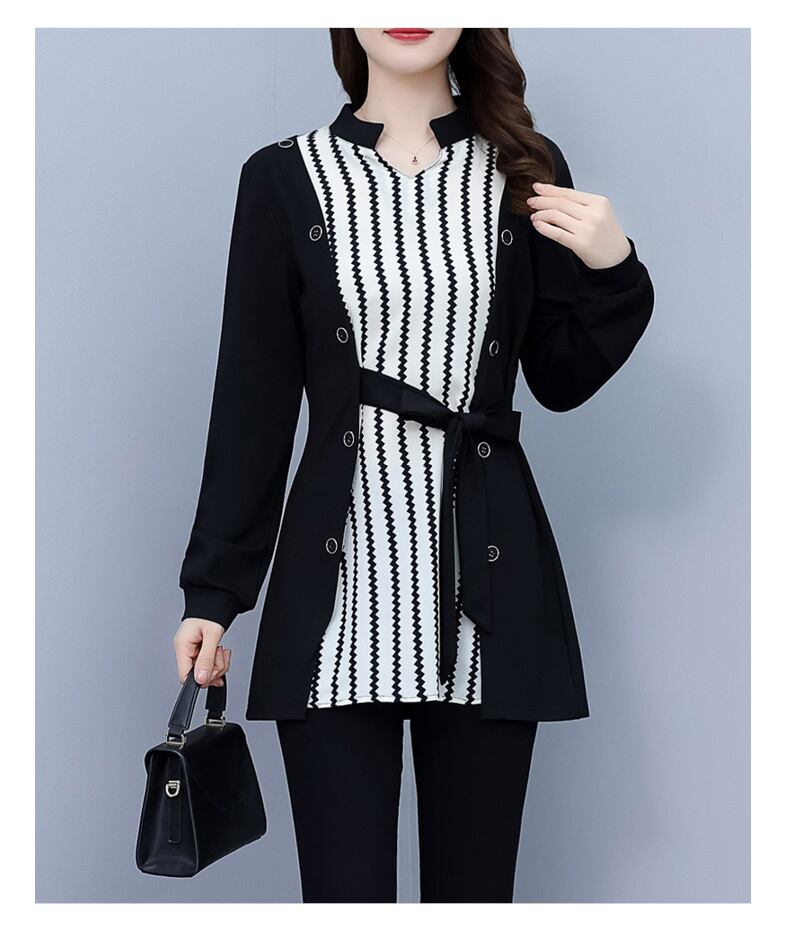 オータムストライプシフォンシャツ ルーズスタイル薄手トップス 大きめサイズ 秋物 muto53194526547