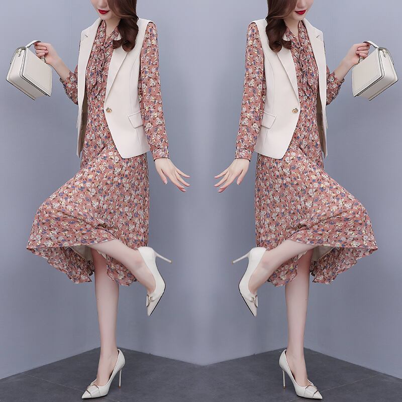 ドレス オータムフローラルシフォンスカート 大きめサイズ 秋物 花柄 muto13713387476