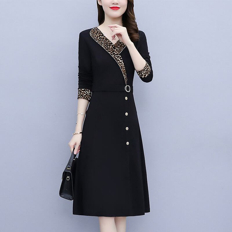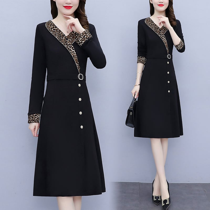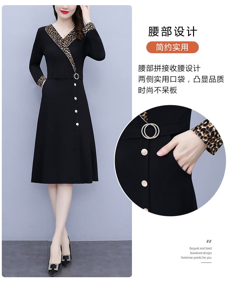 レオパードプリント柄ドレス オータムウェストスリムスカート 大きめサイズ 秋物 ステッチ muto31712238728