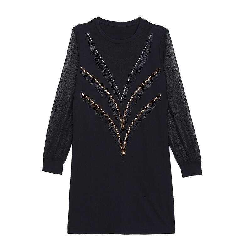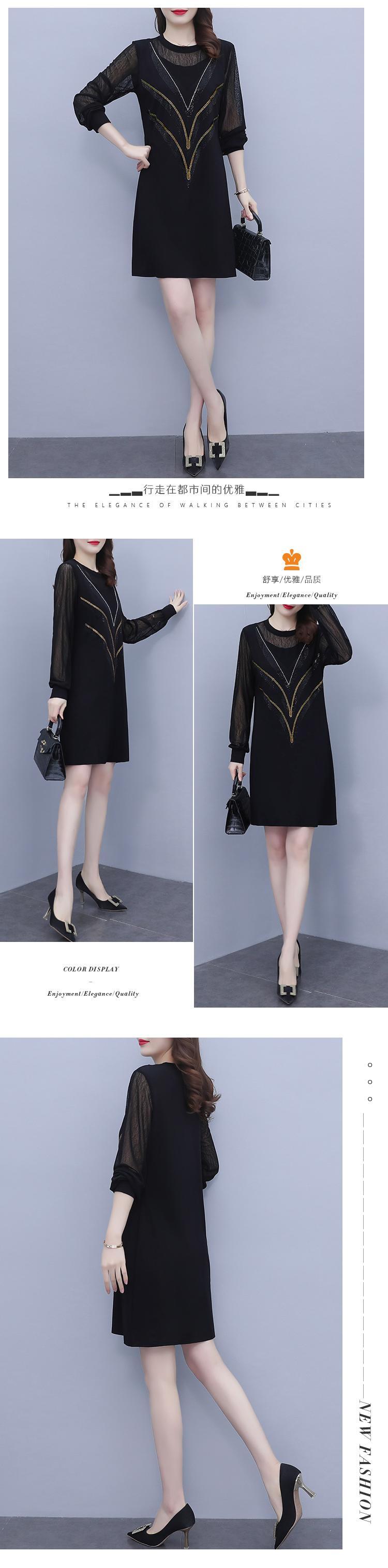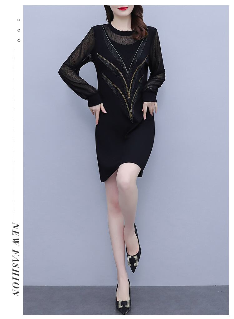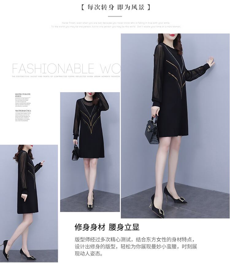 メッシュドレス オータム薄手Aラインスカート 大きめサイズ 秋物 ステッチ muto98045212562