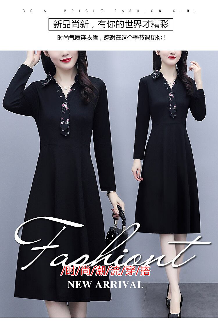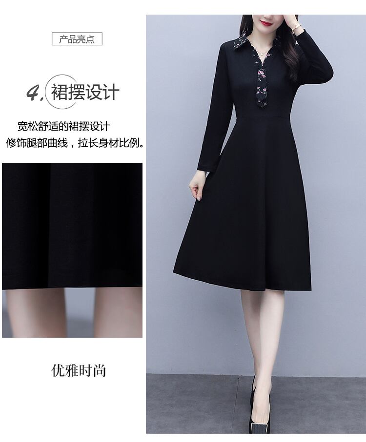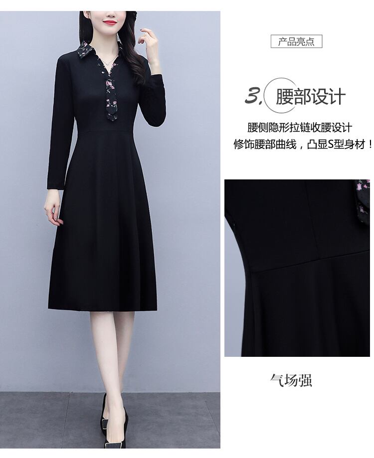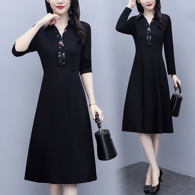 フローラルドレス オータムスタイルブラック 大きめサイズ 秋物 花柄 muto32244049374