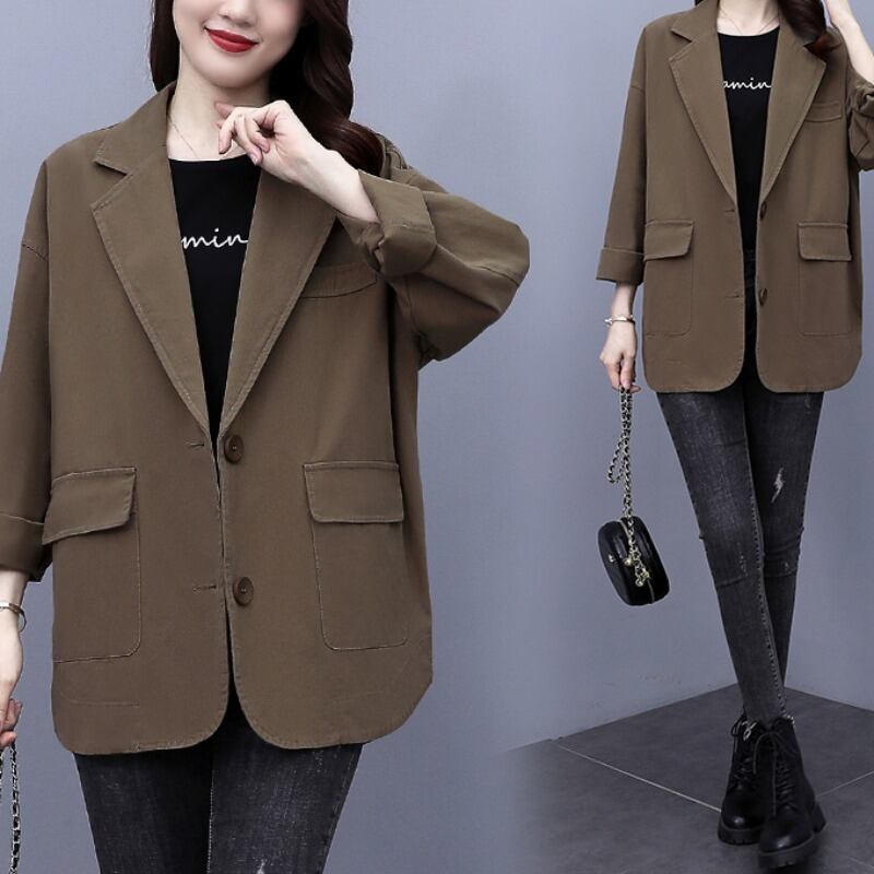 カーキジャケット カジュアルルーズ薄手トップス 大きめサイズ muto61101152225