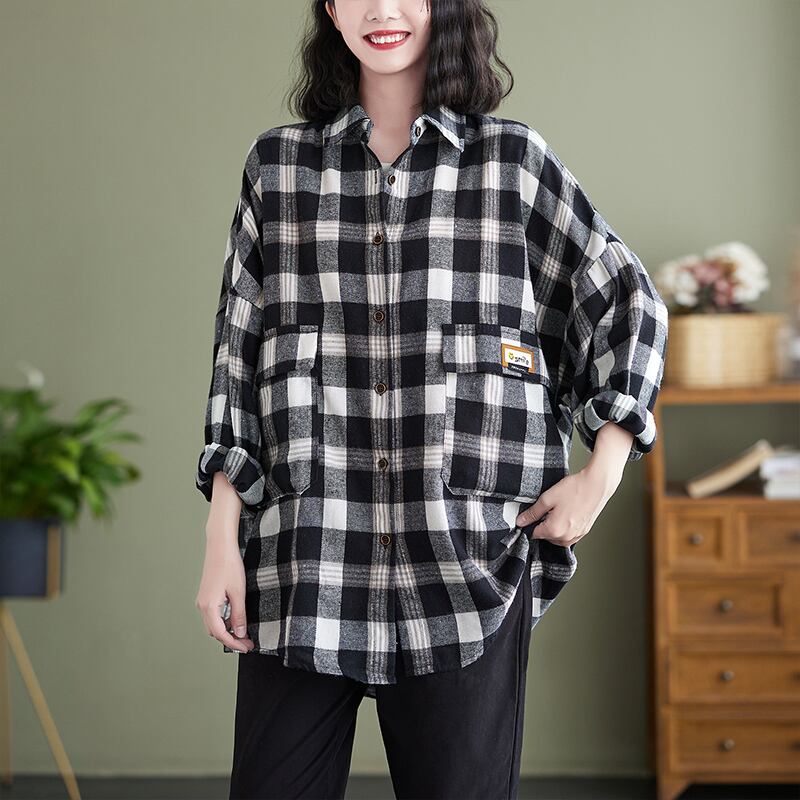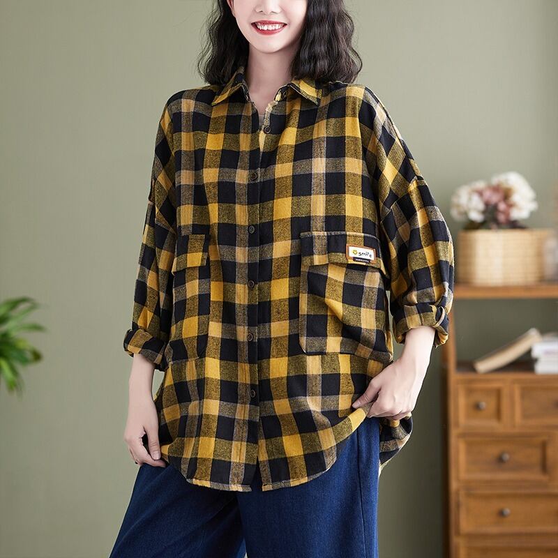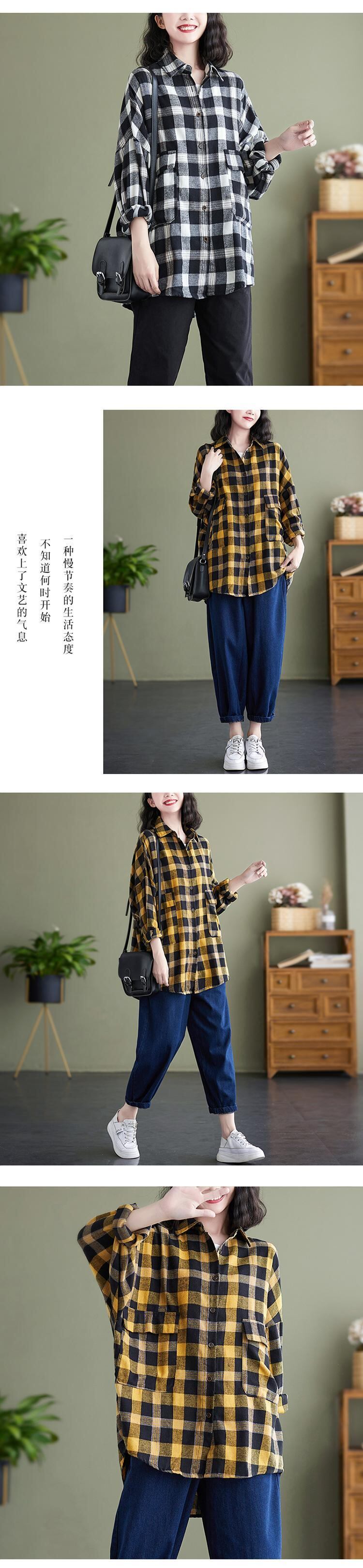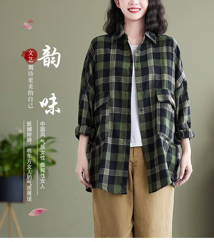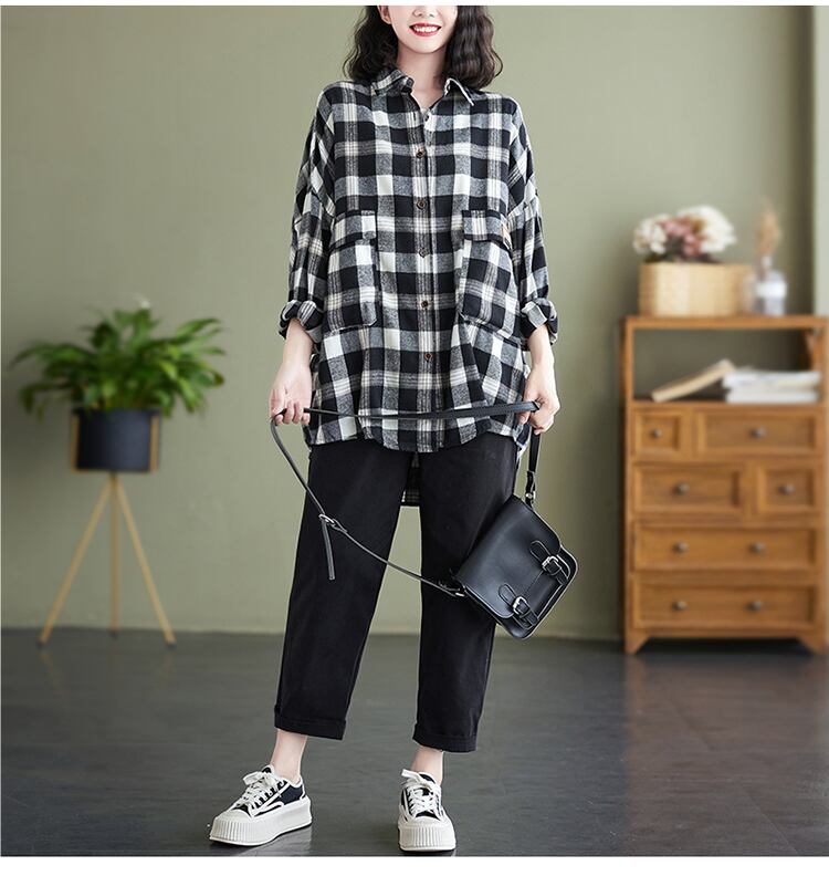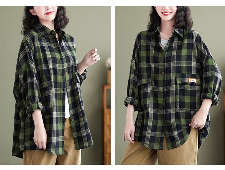 格子柄シャツ スプリングオータムルーズスタンダードスリムカジュアルカーディガン ロング レトロ 大きめサイズ 春物 秋物 muto45509630558
