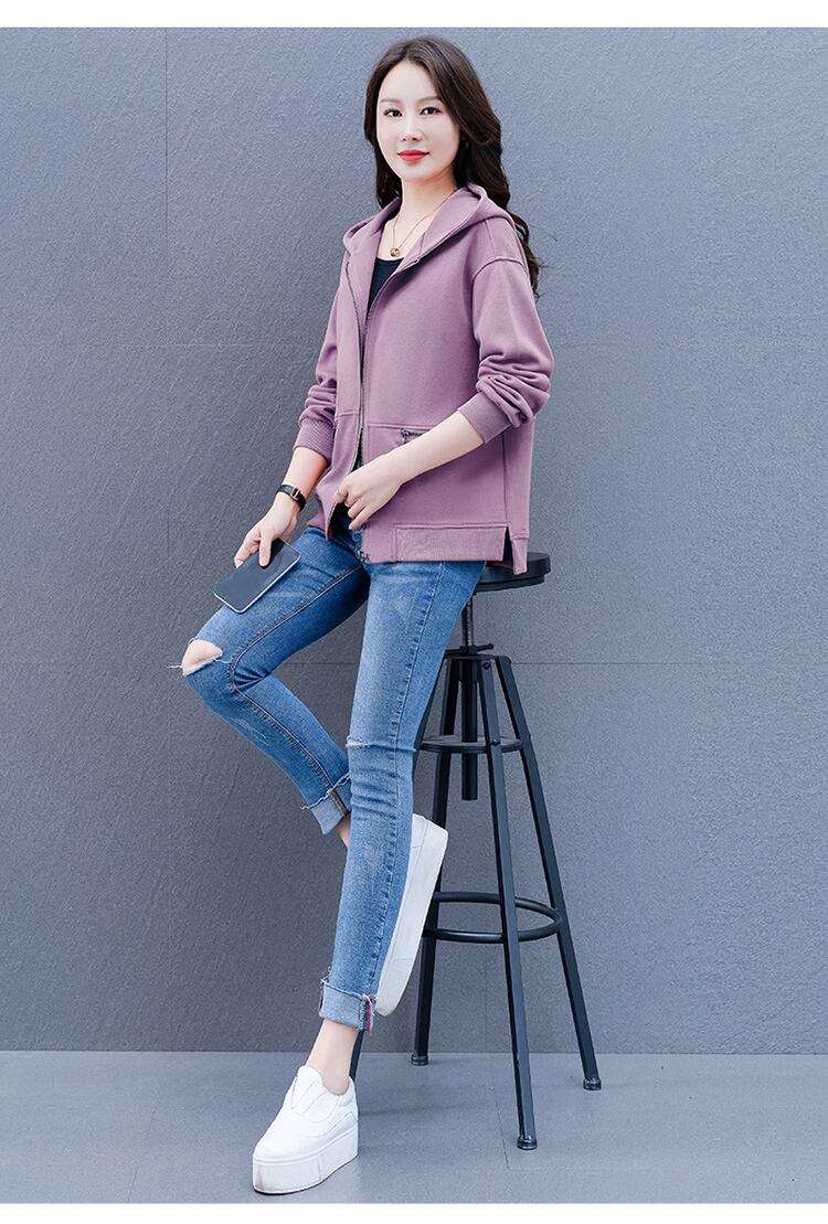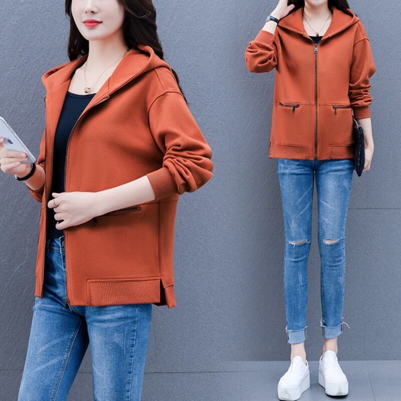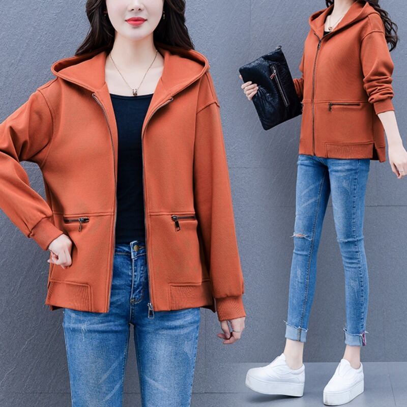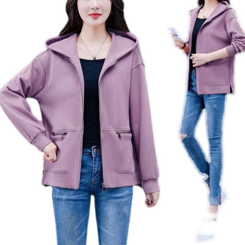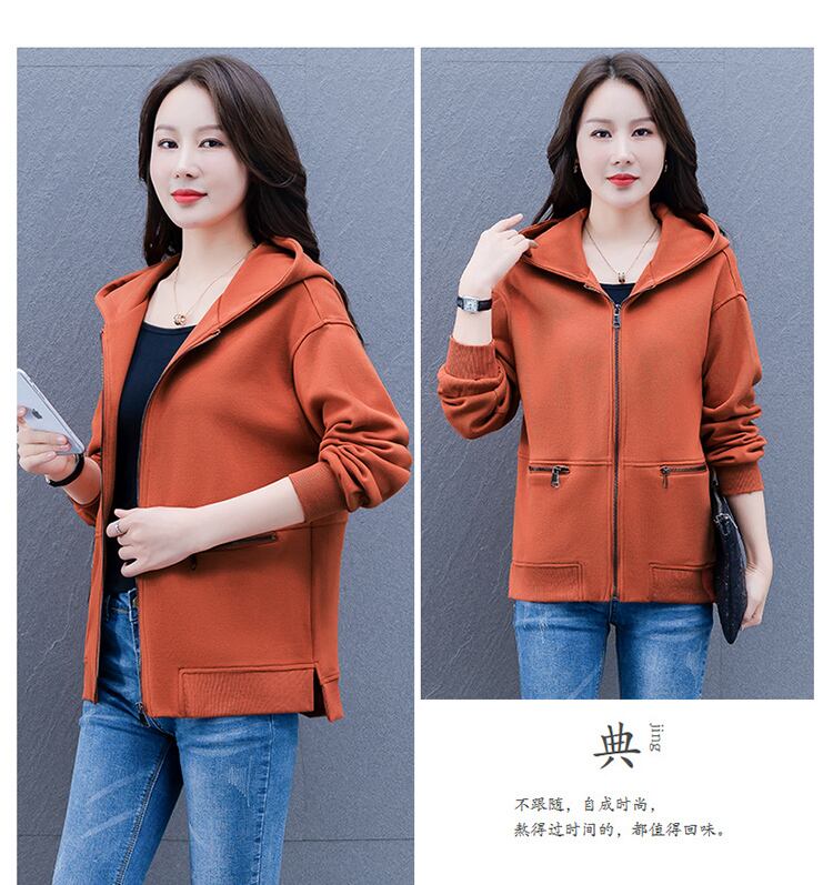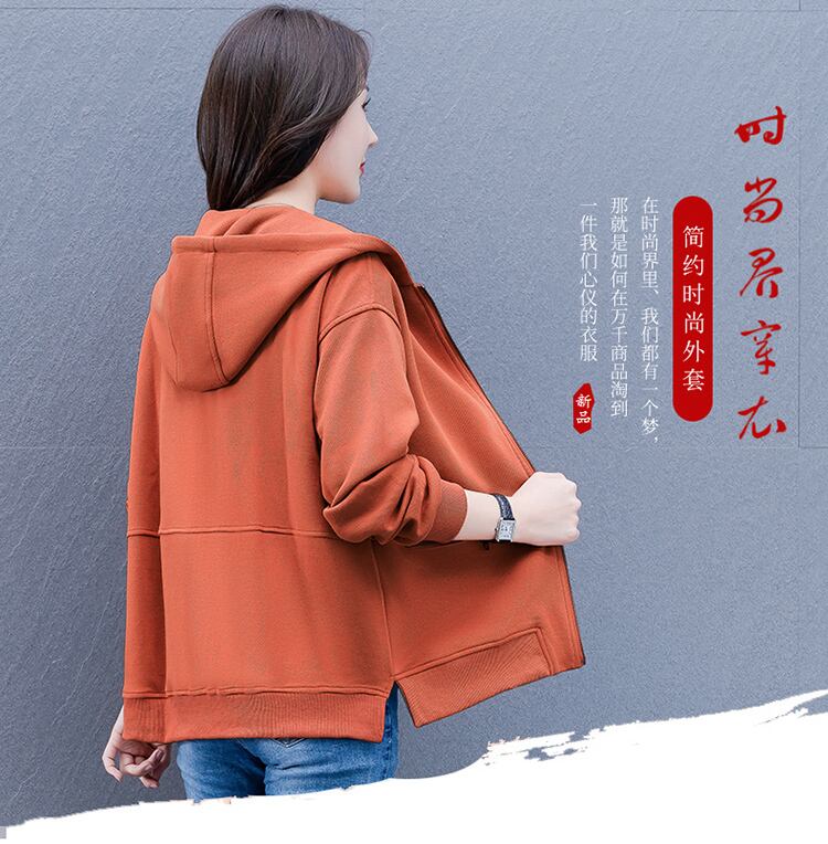 カーディガンセーター スプリングオータムフードルーズジッパーショートジャケット 大きめサイズ 春物 秋物 muto28643056402