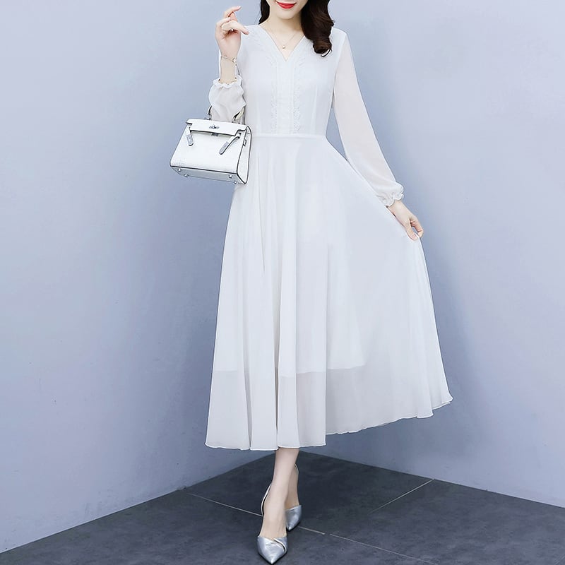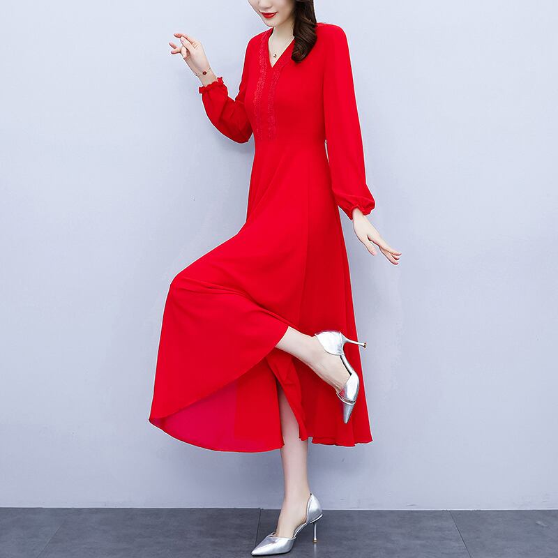 シフォンドレス オータム薄手ルーズウェストスカート ロング 大きめサイズ 秋物 muto29303679240