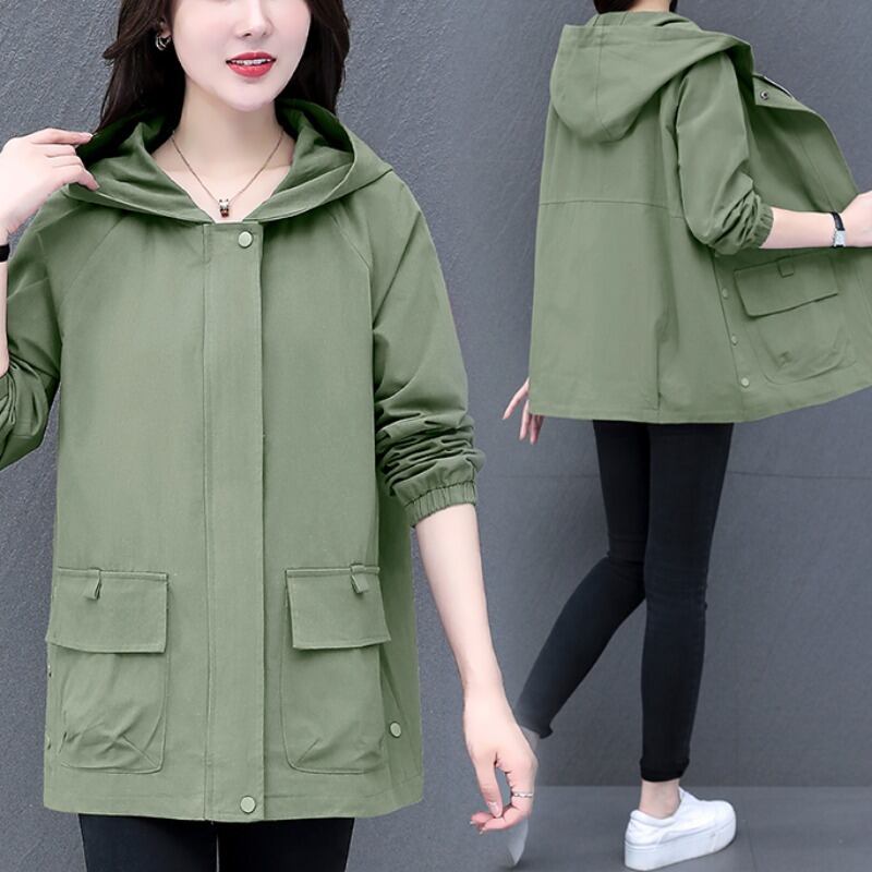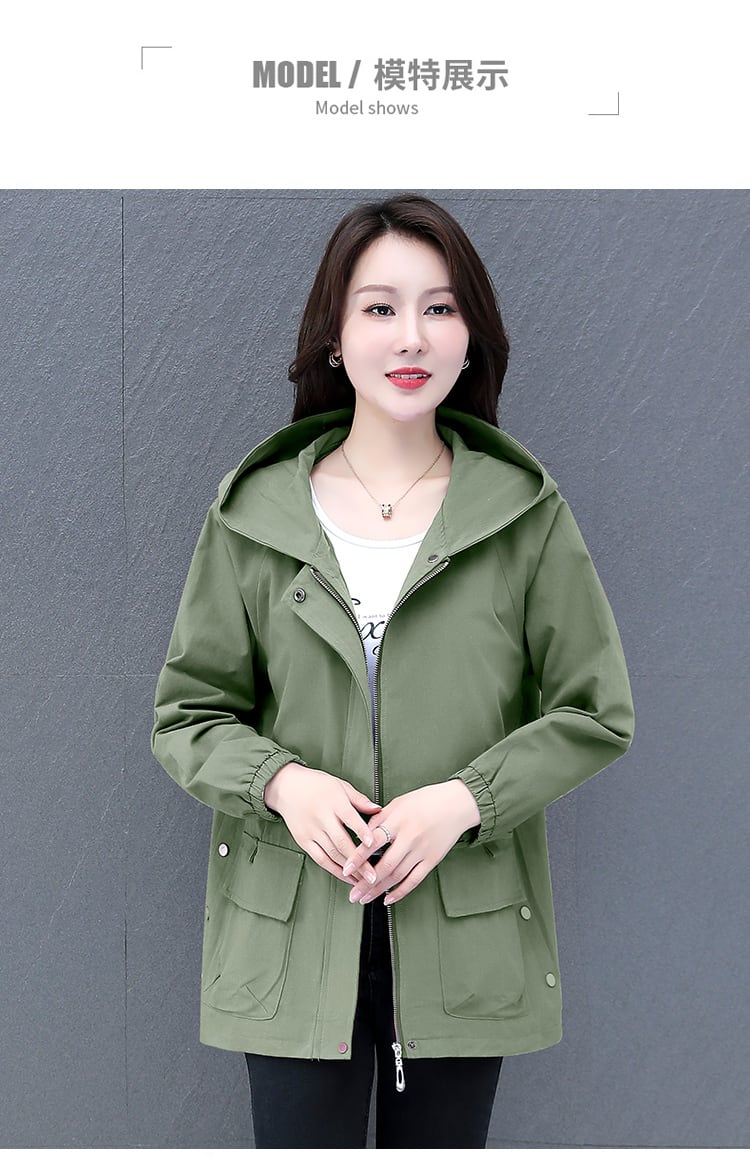 ショートコート スプリングオータムカジュアルフードルーズ薄手ジャケット トップス 大きめサイズ 春物 秋物 muto20794331606