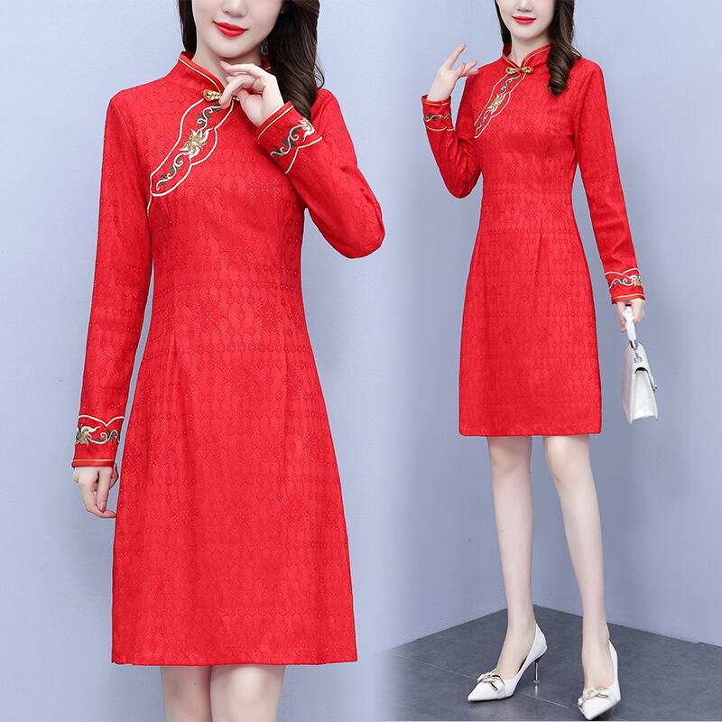 レッドスカート オータムスタイルドレス 刺繍 大きめサイズ 秋物 muto97022848447