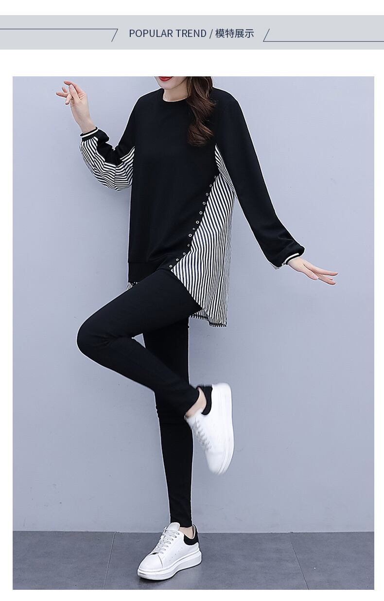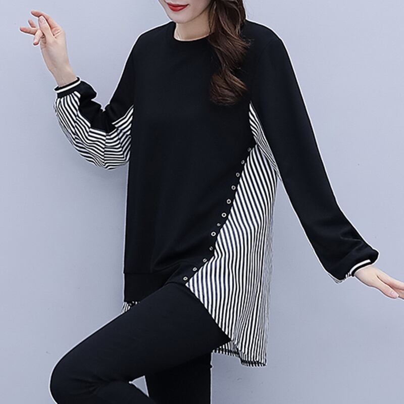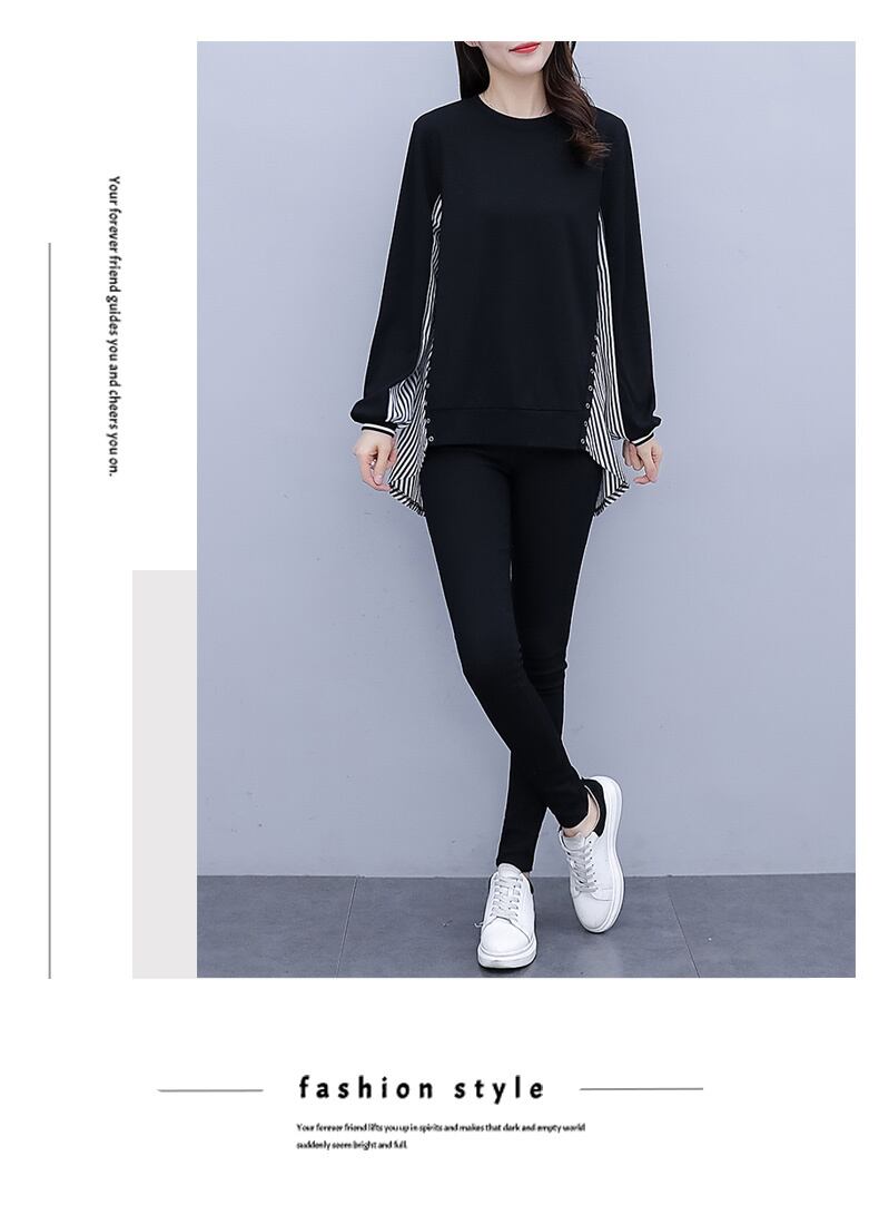 ストライプシャツ オータムTシャツ トップス ロング 大きめサイズ 秋物 ステッチ muto99561967281