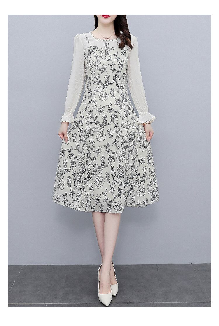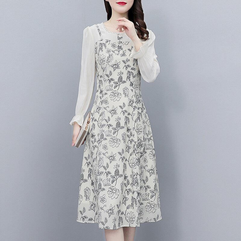 フローラルドレス オータム薄手スカート シフォン 大きめサイズ 秋物 花柄 スクウェア muto74993343757