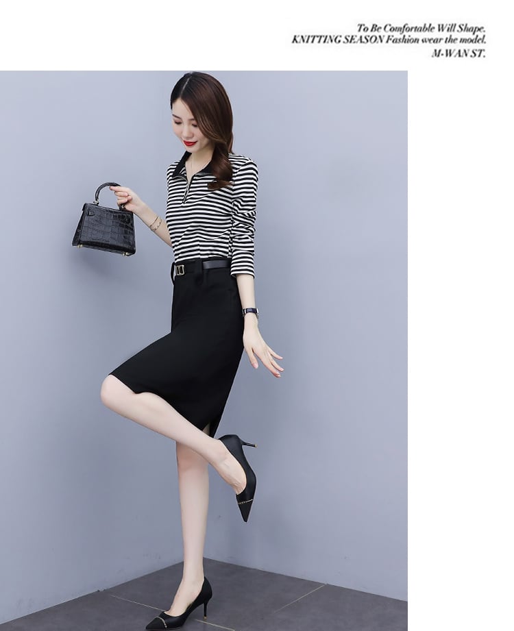 ドレス オータム薄手ストライプスカート 大きめサイズ 秋物 muto91900070103