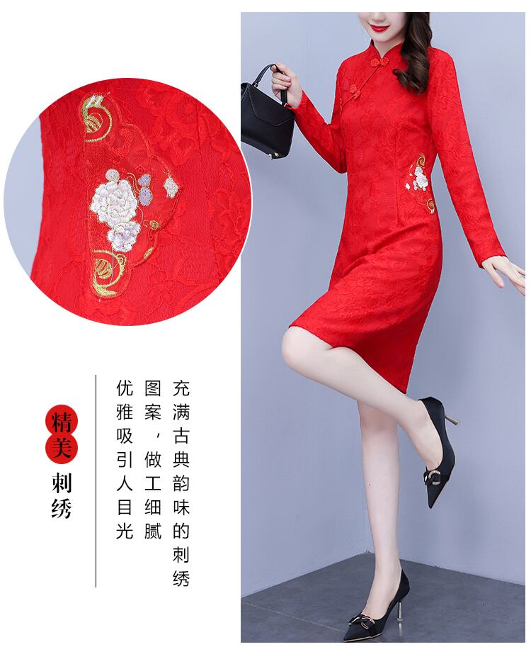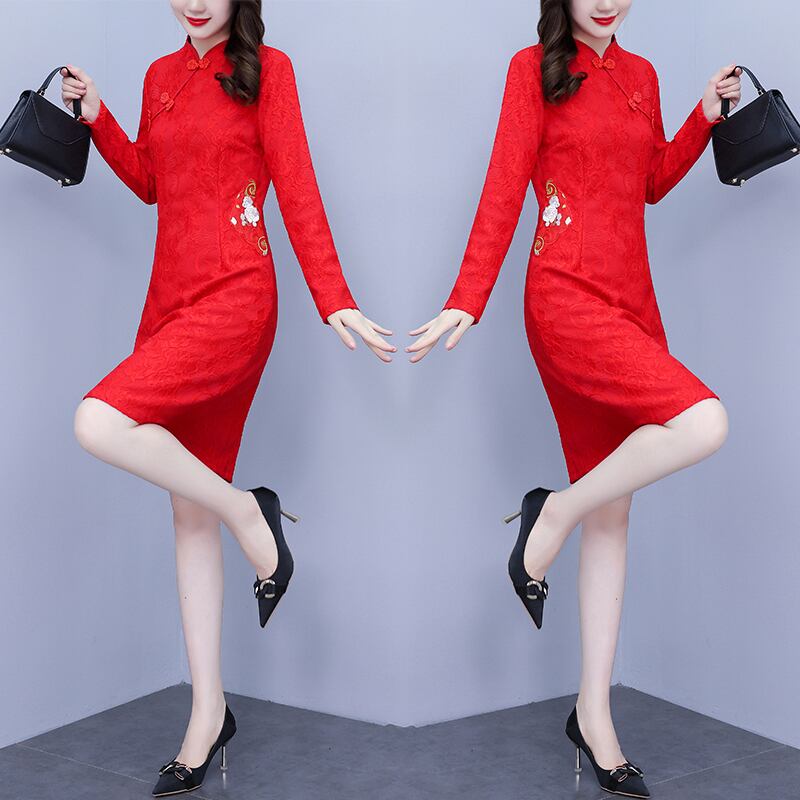 ドレス オータムスタイルスカート レッド 刺繍 大きめサイズ 秋物 muto16302291442