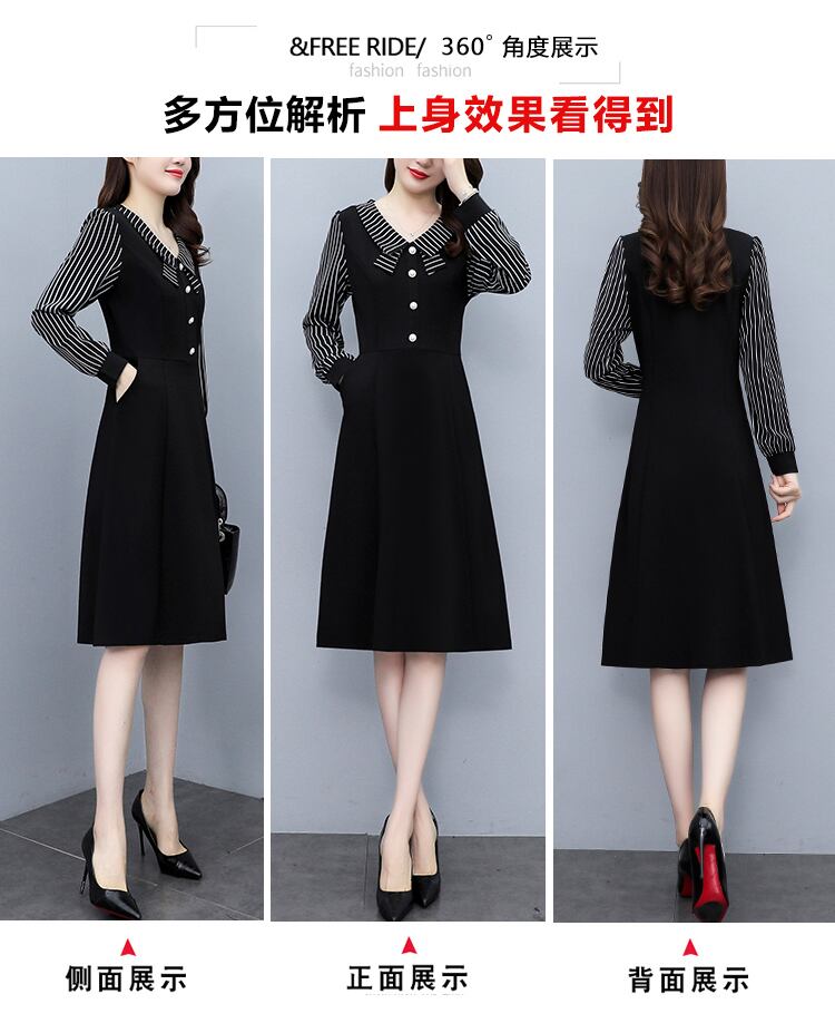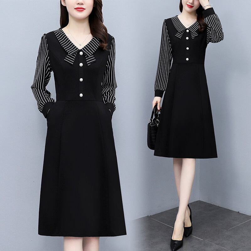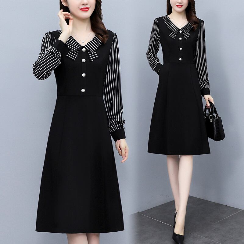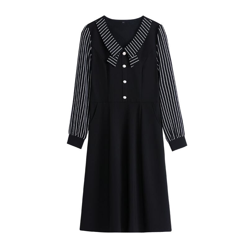 ストライプドレス オータムスカート 大きめサイズ 秋物 ステッチ muto58847262293