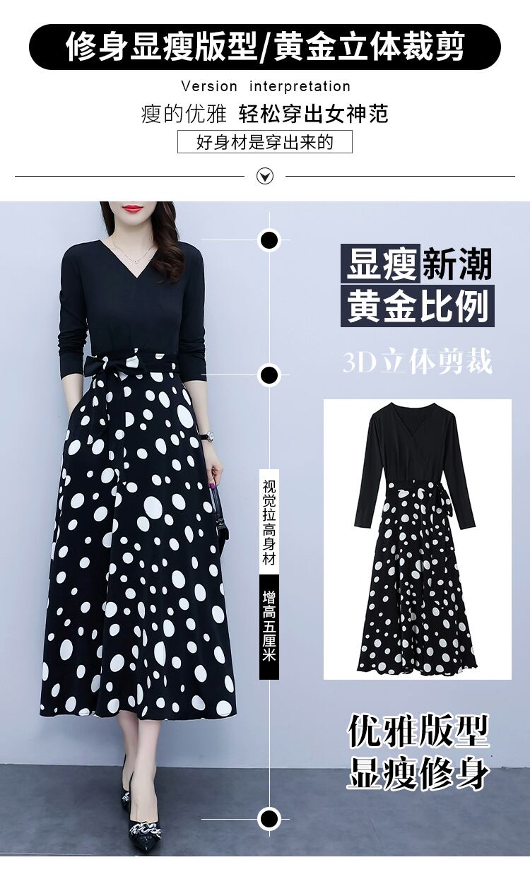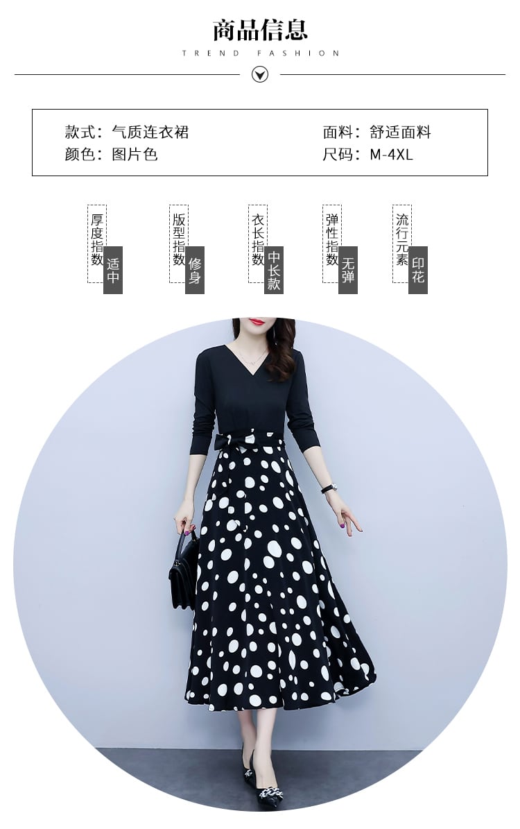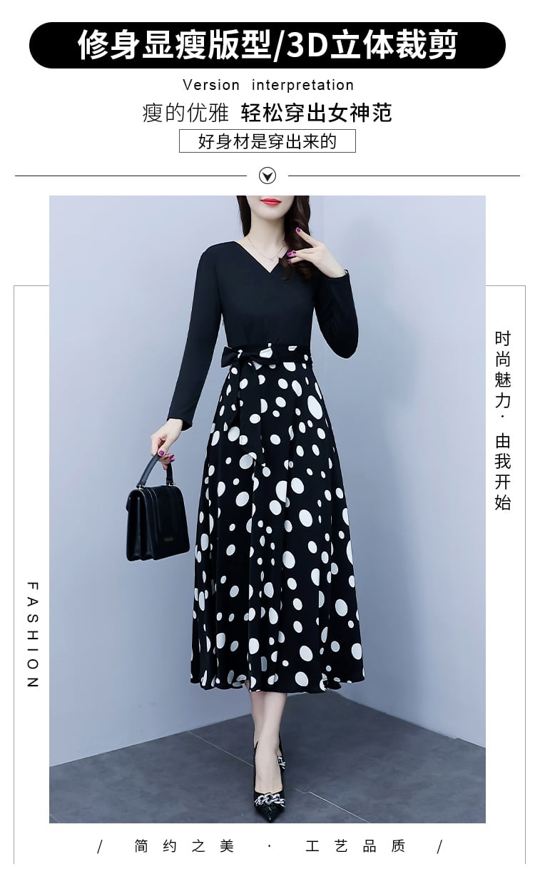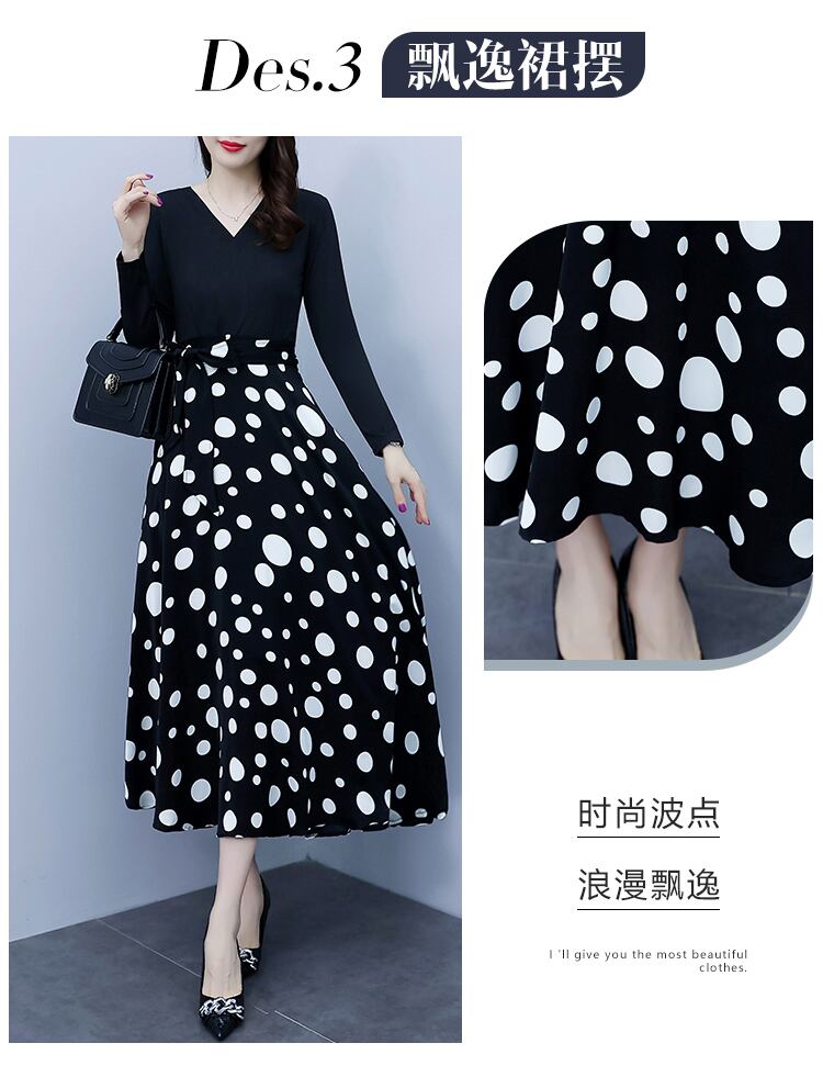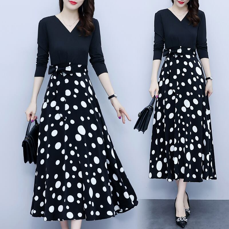 水玉ドレス オータムウェスト薄手Aラインロングスカート 大きめサイズ 秋物 muto42945745128